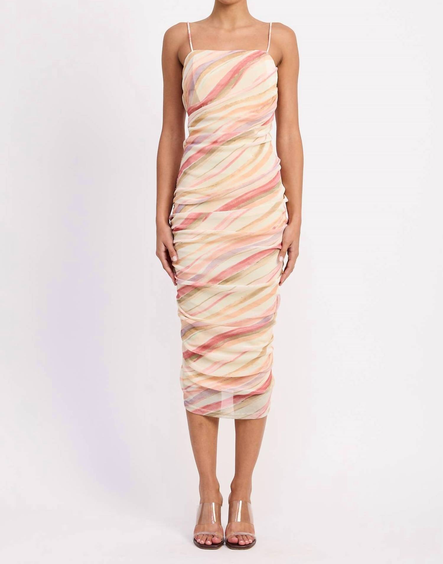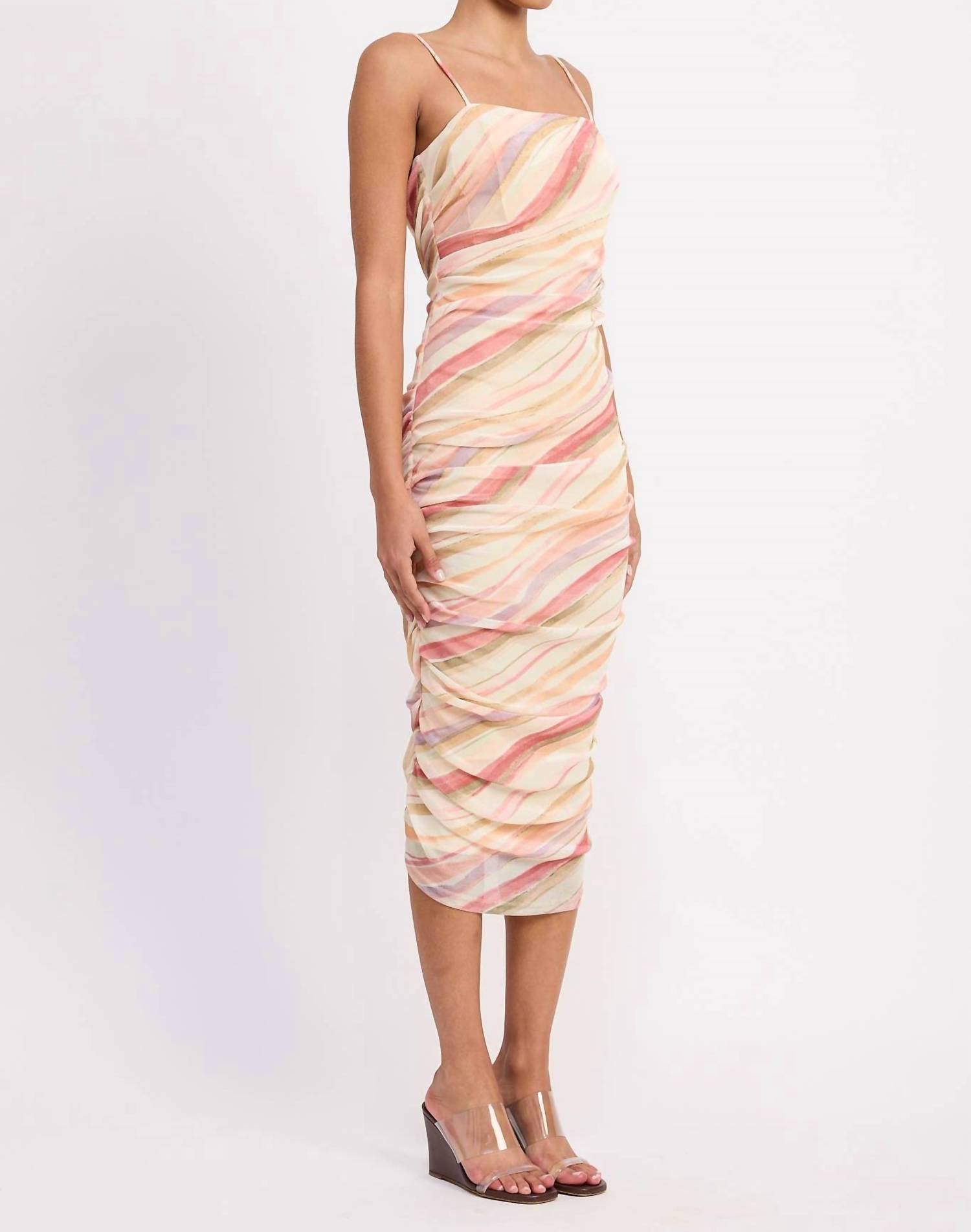 The perfect length dress does exist. Introducing the Watercolor Ruched Mesh Midi Dress by Emory Park, a must-have for elegant summer gatherings. This dress features adjustable spaghetti straps and a midi length in a dreamy pastel swirl print, made from 100% polyester for a light and breathable feel. Its ruched design provides a flattering silhouette, while the side zipper ensures a seamless fit. Perfect for cocktail parties, this slip dress combines quiet luxury with standout style.