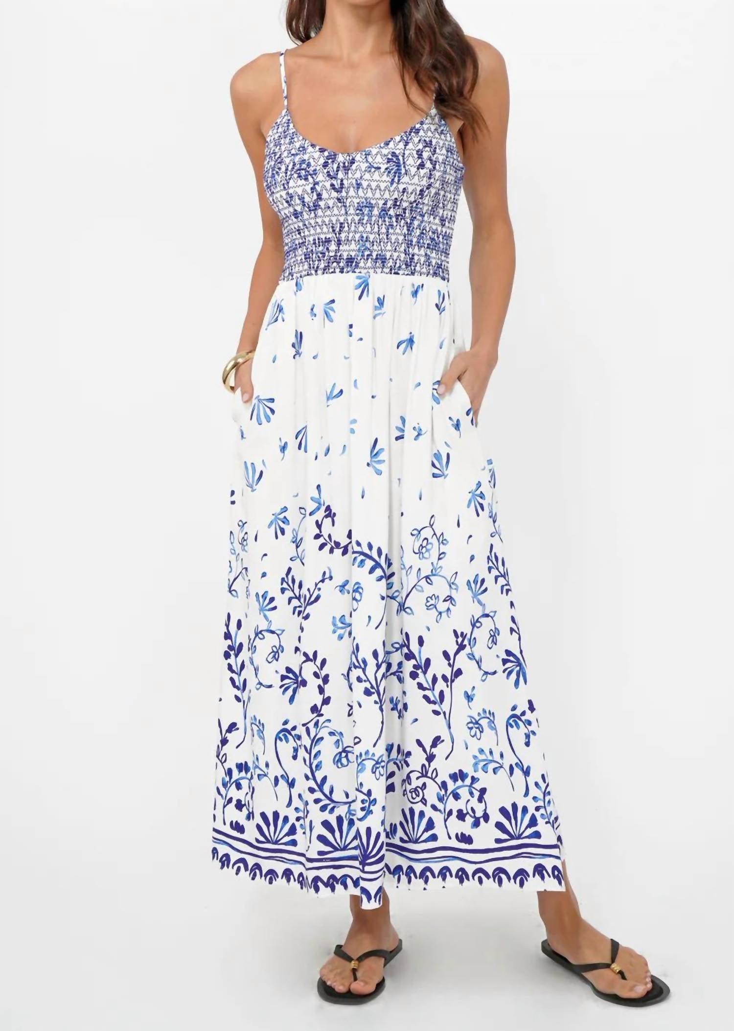 Just add slides or mules and you are good to go. Introducing the GREYLIN Weldon Grove Smocked Midi Dress in a captivating purple/white palette, perfect for your vacation wardrobe. With its spaghetti straps and structured from 100% Rayon, this dress boasts a feminine scoop neckline and a flowing A-line silhouette. Designed for both style and functionality, it features a smocked bodice, a gathered skirt, and convenient side pockets with a pull-on closure. Care instructions suggest hand washing and line drying to preserve its delicate boho chic pattern.