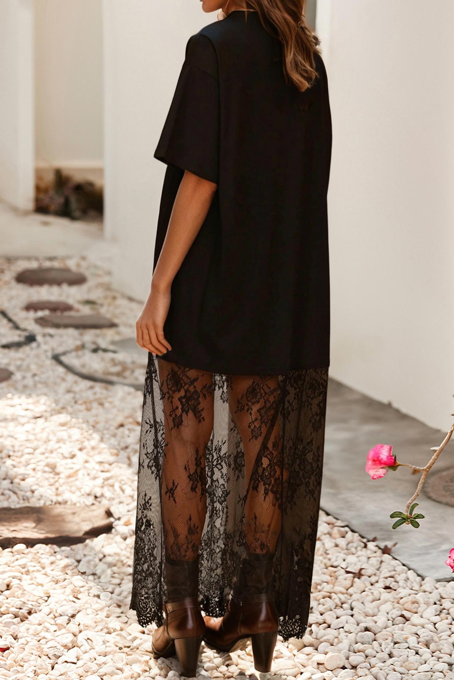 A midi dress so versatile, your options for wearing it are endless. Introducing the Short Sleeve Lace Dress by Little Daisy Closet, a staple for feminine elegance in classic black. Crafted from 100% polyester with short sleeves, this textured dress features a high waist and patchwork lace design, perfect for a versatile shift silhouette. Originating from timeless style cues, its pull-on closure and crewneck enhance the effortless elegance that suits both chic evening events and casual gatherings. A must-have piece that invites sophistication year-round.