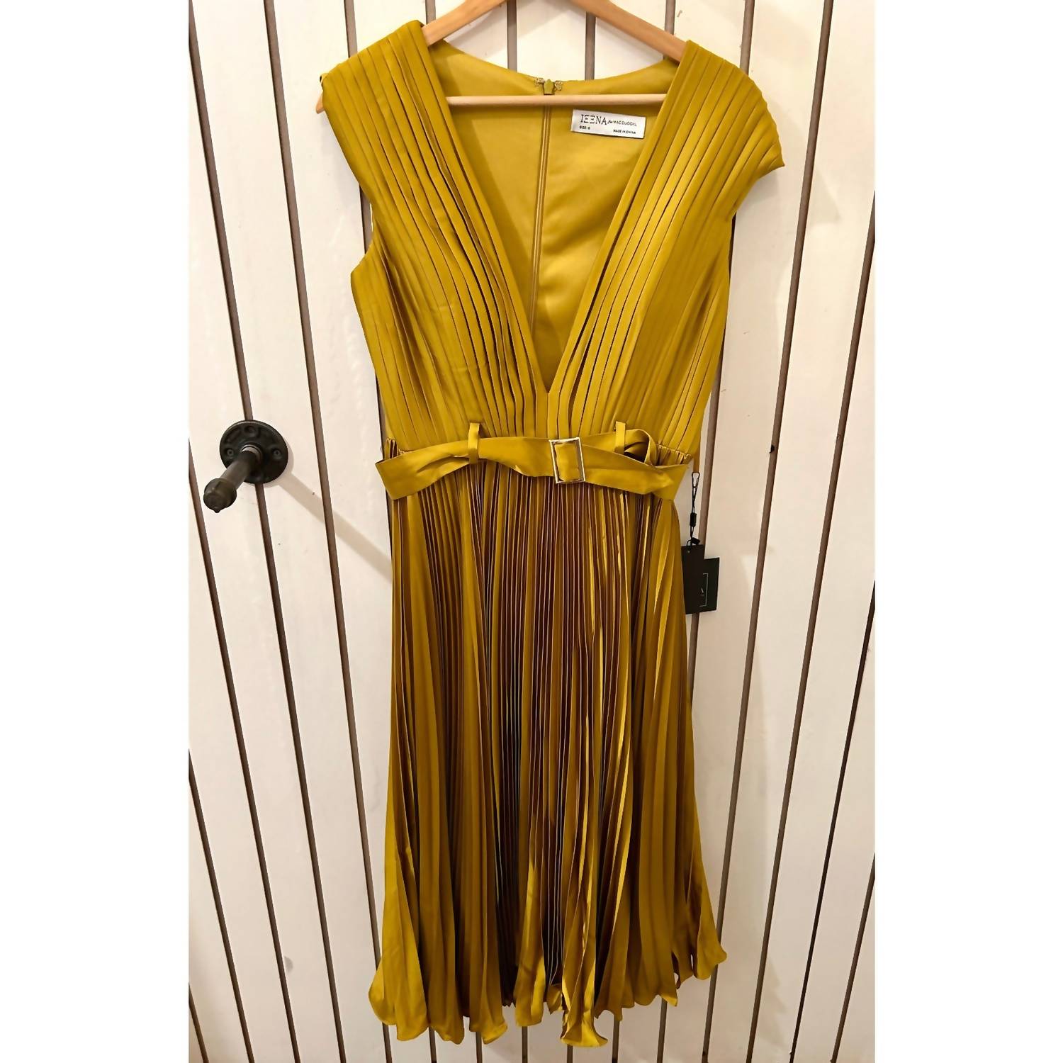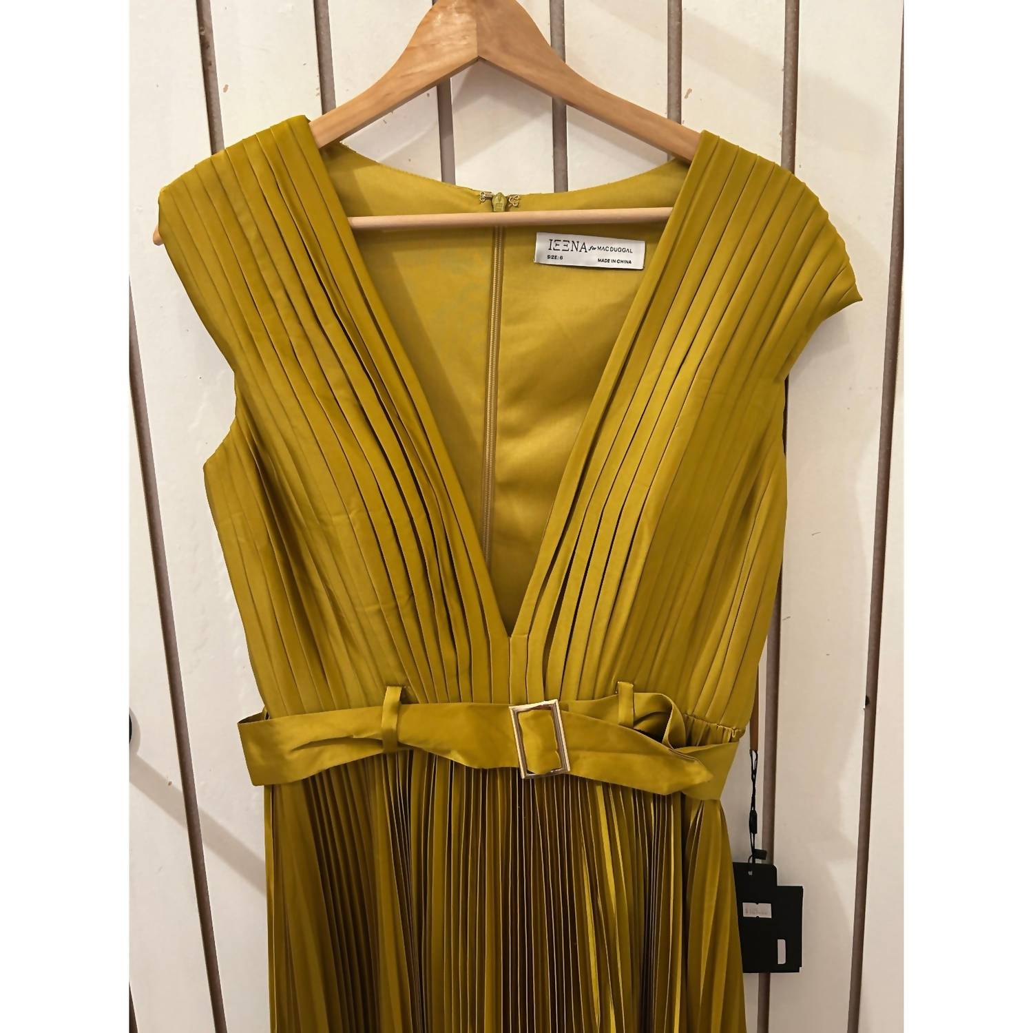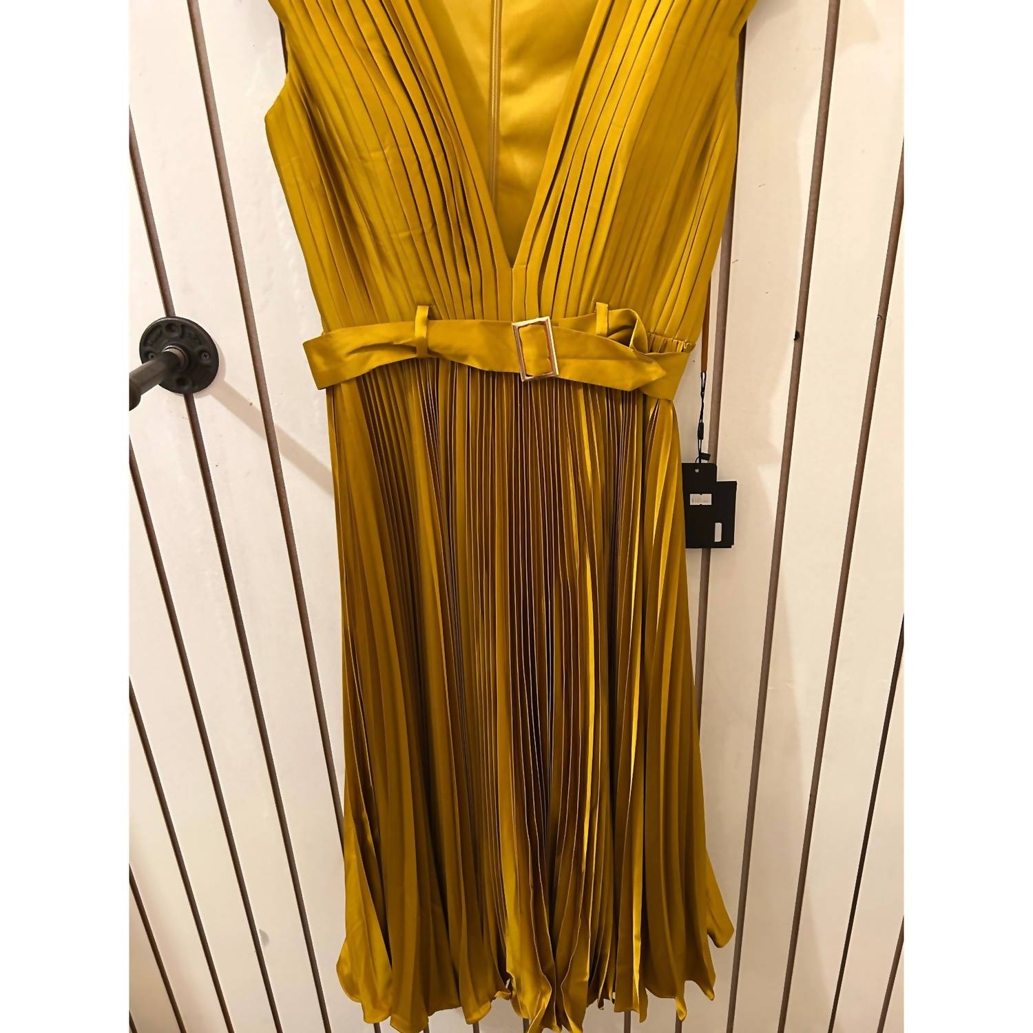 A midi dress so versatile, your options for wearing it are endless. Elevate your evening event look with the Pleated Cap Sleeve Satin Midi Dress by Mac Duggal, a stunning piece in a luxurious gold hue. This dress is designed with cap sleeves and a flattering A-line silhouette, featuring a pleated skirt and a chic belt detail for Old Hollywood glamour vibes. The solid pattern gives it a refined, quiet luxury appeal, and it’s equipped with a zip closure for a seamless fit. Made for women, it requires dry cleaning to maintain its exquisite satin finish, ensuring you look your best every time.