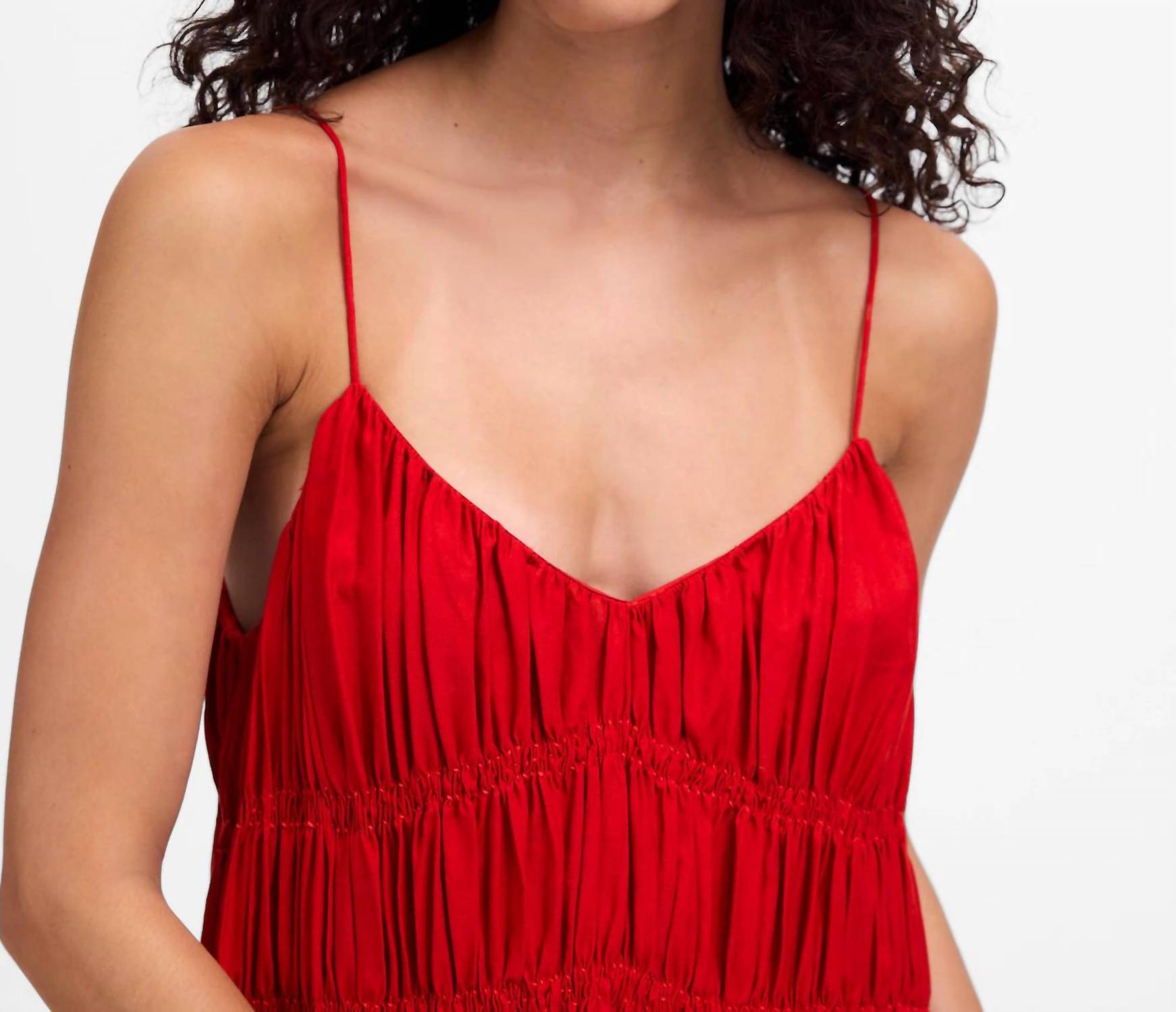 The perfect length dress does exist. Light and airy in a linen-cotton blend, this textural midi dress is made for wearing all summer long. It features a V-neck, hidden side pockets and a relaxed fit. Please note: this style runs large, so we recommend ordering one size smaller than your normal size. Easy fit. Falls 54" from high point of shoulder 52% linen/48% organic cotton. Dry clean.