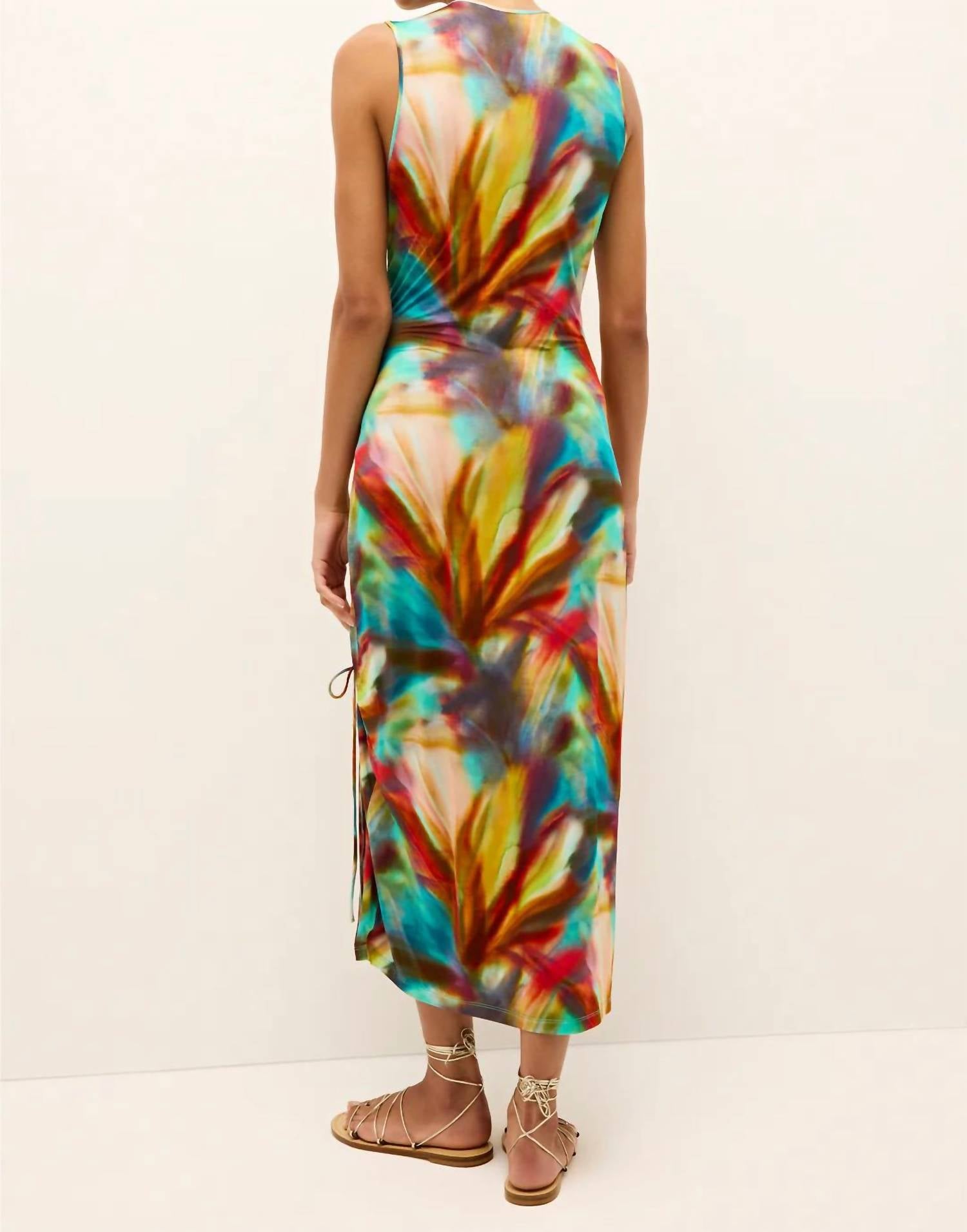 The perfect length dress does exist. Embrace the essence of a romantic getaway with the Marie Oliver Ilana Figure-hugging Midi Dress, designed in the captivating Fauna pattern. This sleeveless bodycon dress features a side slit with cinchable ties, allowing you to adjust the hemline for a customized fit. It is expertly crafted from a stretch jersey blend of 95% Viscose and 5% Elastane. Care instructions specify dry clean only, ensuring the durability and vibrance of its tropical-inspired design.