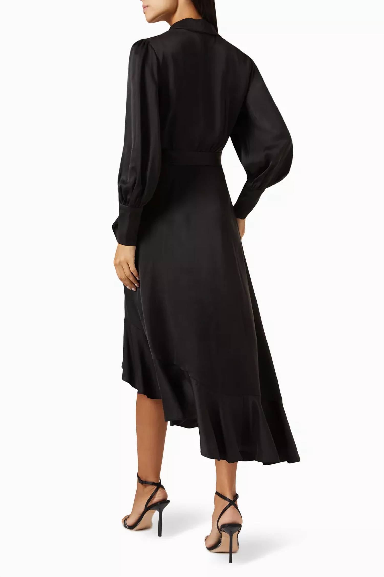 Tea & Cup - Ruffle Hem Wrap Midi Dress