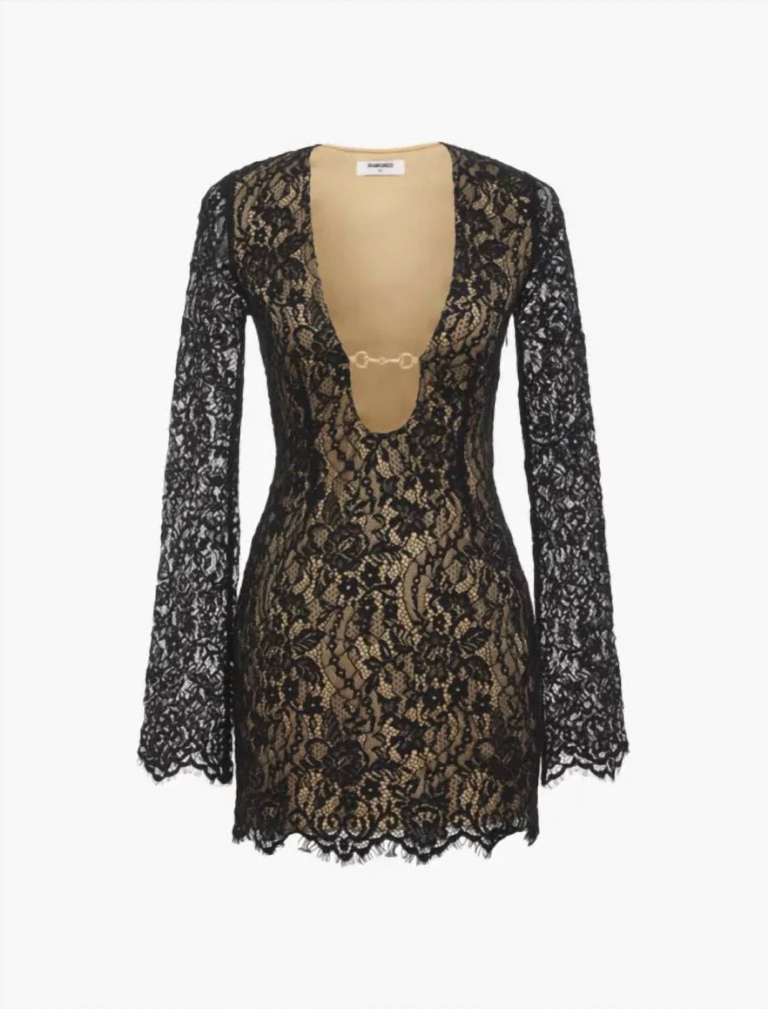 A short and breezy dress for those warmer days. Introducing the Fools Rush Mini Dress by Rumored, a captivating choice for your next dinner party. This vintage-inspired dress features long sleeves with intricate lace detailing and a bodycon silhouette for a flattering fit. Highlighting a plunging V-neckline, it is crafted from textured black lace, perfect for a summer evening. Care for this exquisite piece by hand washing and line drying to maintain its allure.