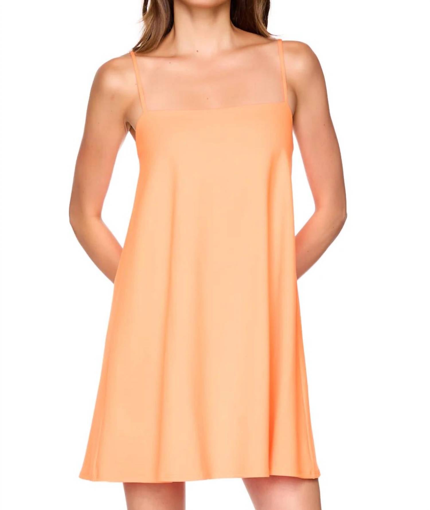 The kind of easy and flattering dress you'll be reaching for all season long. Step out with confidence in the Susana Monaco String Flare Dress. This mini dress in the vibrant Clownfish hue features spaghetti straps and a square neckline for a flattering fit. Crafted from a 90% Nylon and 10% Spandex blend, it promises comfort and a playful flare silhouette perfect for any summer outing. With a convenient pull-on style, you can machine wash on delicate and tumble dry on low for easy maintenance.