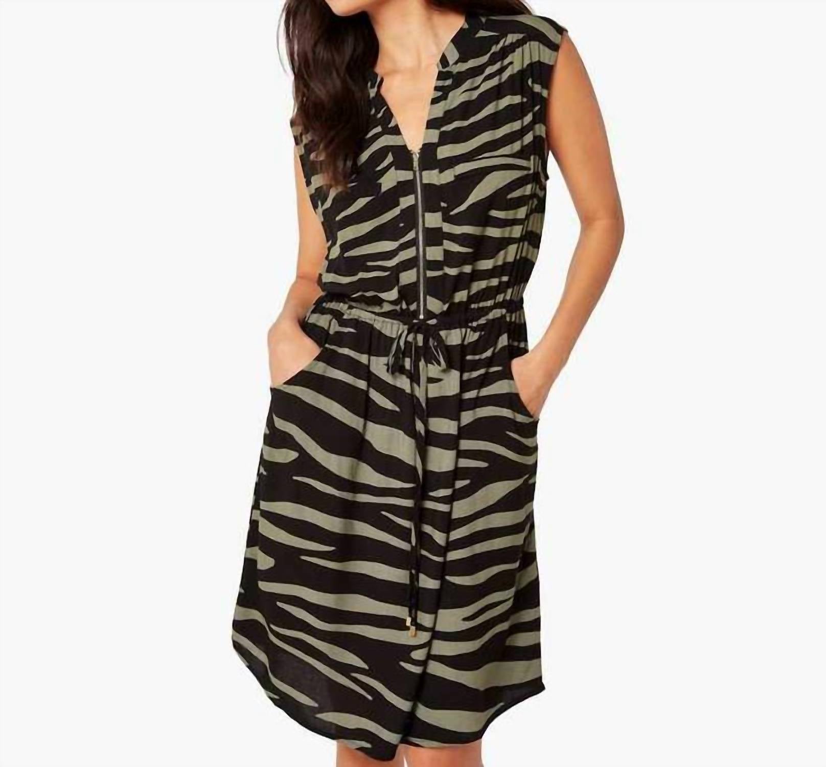 The kind of easy and flattering dress you'll be reaching for all season long. Introducing the Stripe Zip Sleeveless Dress by APRICOT, a standout piece perfect for your summer wardrobe. Featuring a striking black and green zebra print, this mini-length dress has a V-neckline and elasticated waist for a flattering fit. Made from 100% viscose, it ensures a lightweight feel, with a convenient zip-front fastening. Care: Machine wash and tumble dry.