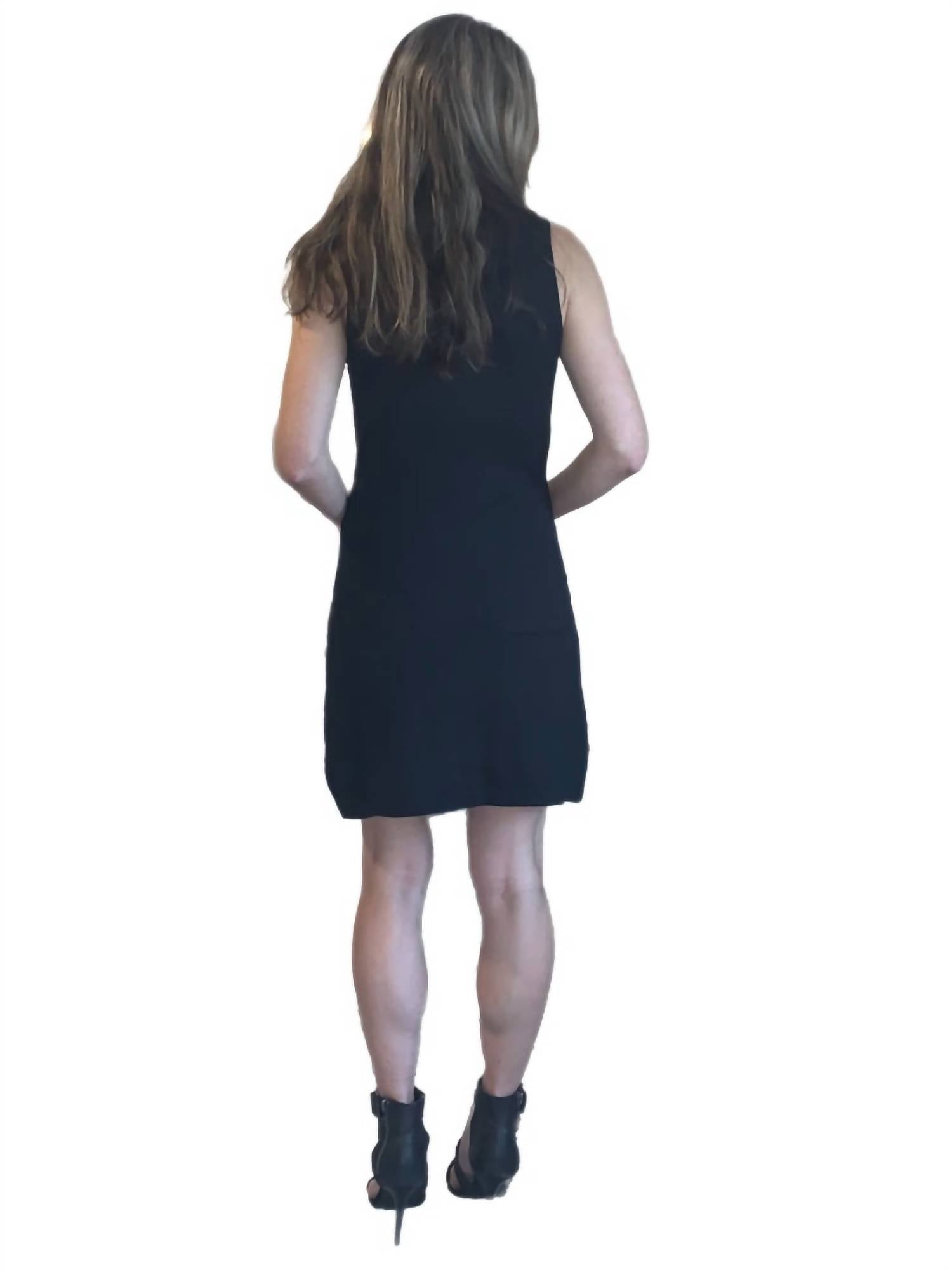 A short and breezy dress for those warmer days. Turtleneck dress. Sleeveless. Mini length with pockets. True to Size. Hand Wash.
