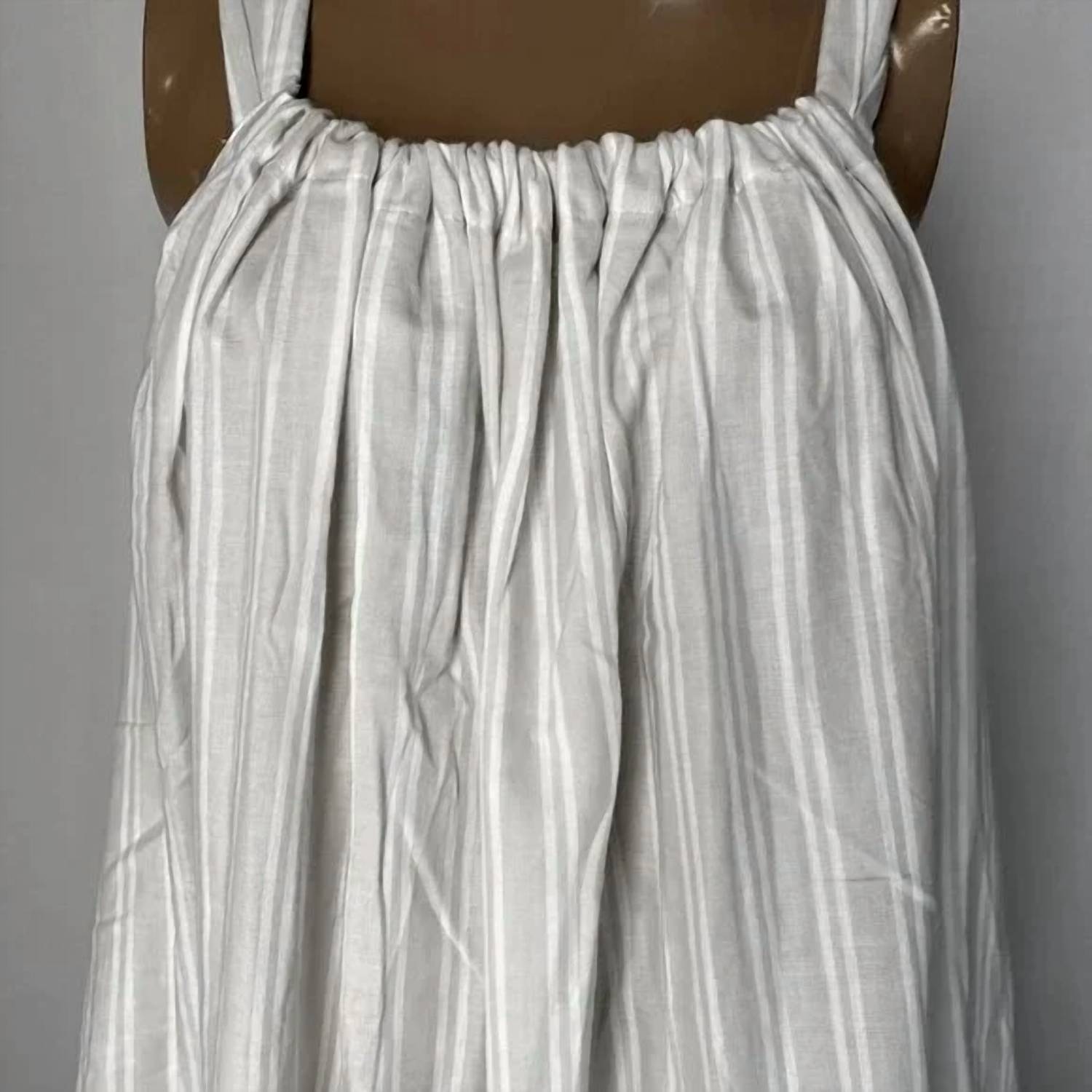 A short and breezy dress for those warmer days. Elevate your vacation wardrobe with the Vivienne Dress by Care by Me, crafted from 100% organic cotton for exceptional softness. This sleeveless mini dress features a stripe pattern in grey and white and a shift silhouette that exudes a light and feminine charm. Made in India, the dress includes convenient side pockets and a pull-on closure. Easy to care for, machine wash it to maintain its fresh look season after season.