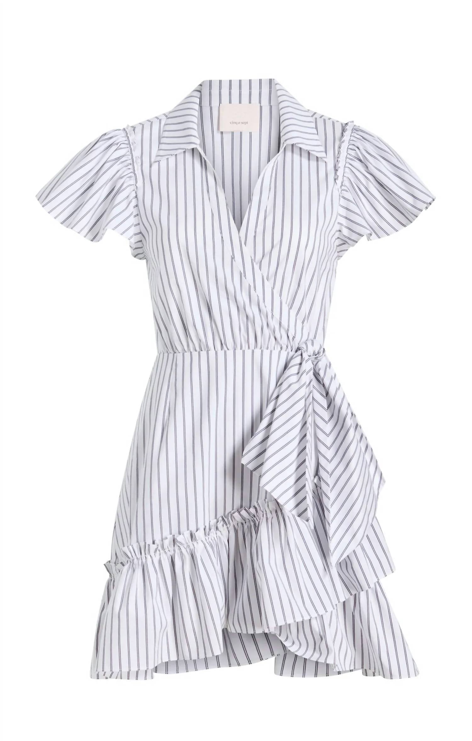 The perfect mini dress for those warmer months. Elevate your summer workwear with the Lila Mini Dress by Cinq a Sept, a stunning piece in white stripe that perfectly balances elegance and playfulness. Designed with short sleeves, this 100% polyamide dress features a flattering wrap silhouette and a sophisticated V-neckline. Its mini length makes it ideal for holiday parties, particularly on the 4th of July. Closure: Pull on. Care: Machine wash, line dry.