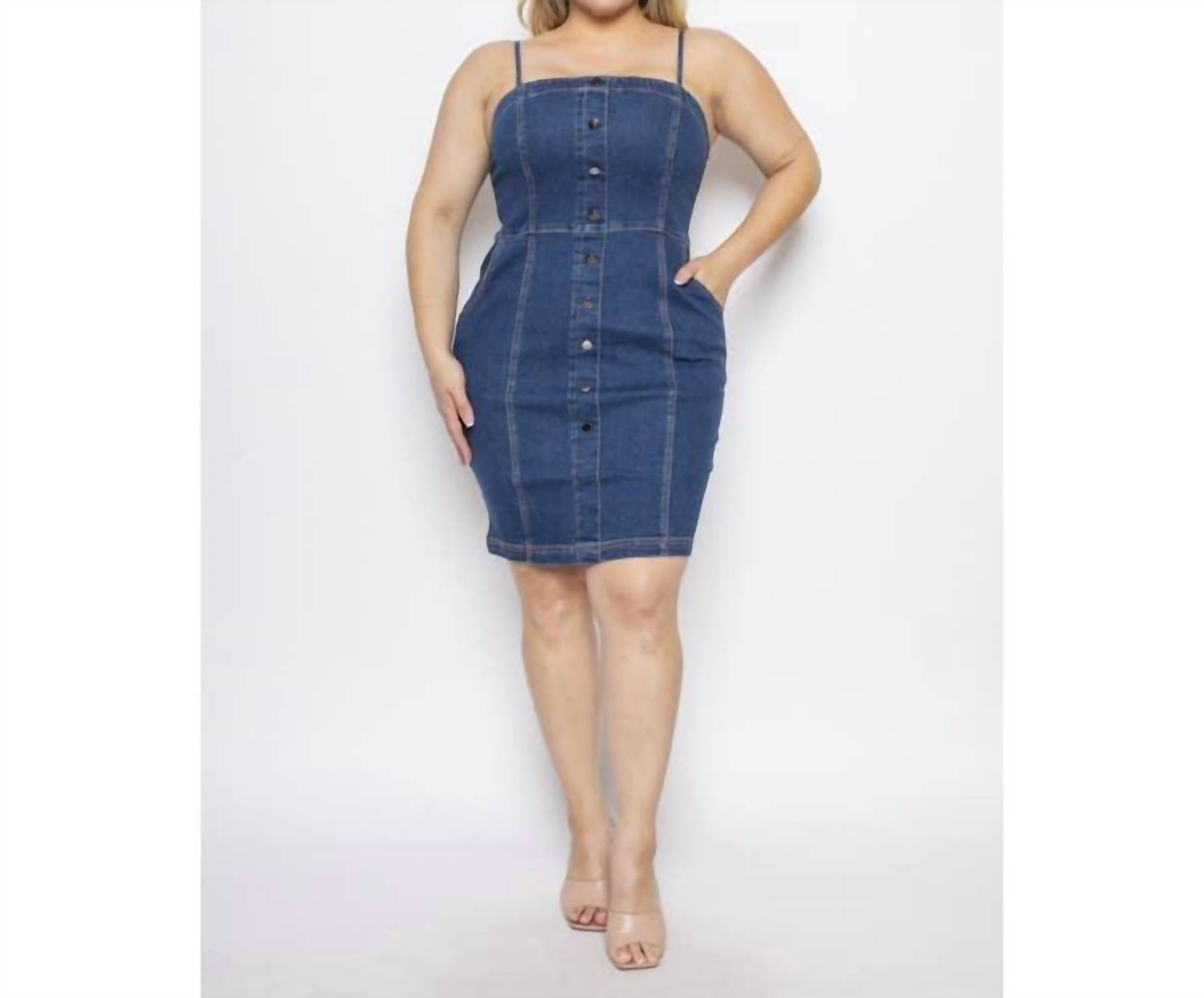 Curve Market - Square Neck Button Down Side Pockets Denim Mini Dress