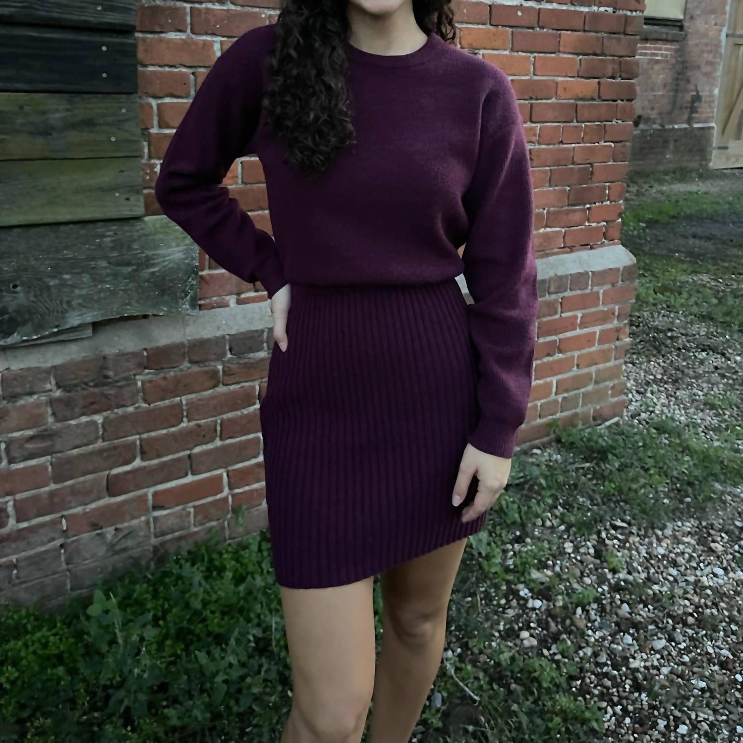The kind of easy and flattering dress you'll be reaching for all season long. Embrace elegance with the Kaden Sweater Dress by Design History, a plum masterpiece blending style with comfort. This long sleeve dress, designed in a sheath silhouette, artfully combines a fitted bottom with a loose, comfy top. Crafted from a blend of 56% Nylon, 24% Acrylic, 16% Wool, and 4% Spandex, it’s the perfect choice for your next dinner party. Closure: Pull on. Ideal for Thanksgiving and fall soirées. Model is wearing a size xsmall.