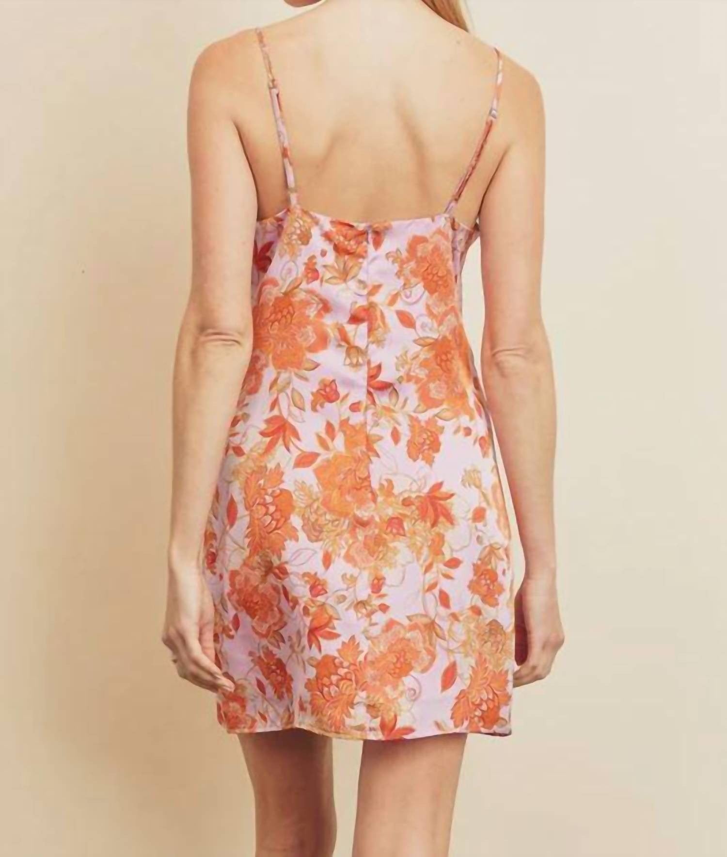 A short and breezy dress for those warmer days. Unveil your playful side with the Wild Child 2.0 Mini Slip Dress by DRESS FORUM, a vibrant piece that demands attention. Designed with flirty spaghetti straps and a charming squareneck, this mini dress is adorned with an orange and pink floral pattern, capturing a lively spirit. Made from luxurious satin, it features a convenient zip closure at the back. A perfect choice for women looking to infuse their wardrobe with a pop of floral elegance.