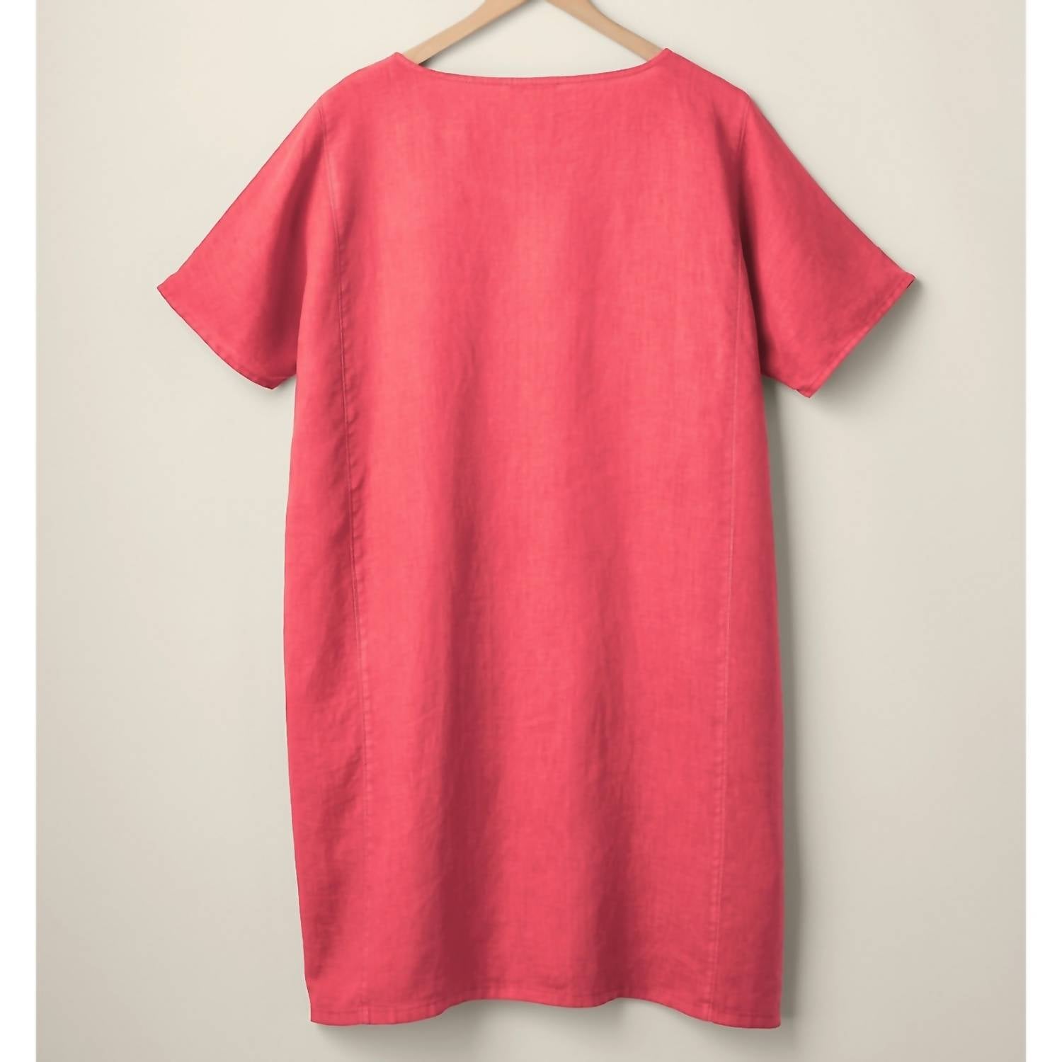 The kind of easy and flattering dress you'll be reaching for all season long. Discover effortless style with the Washed Linen Tee Dress in a striking Lipstick shade by Eileen Fisher. This short sleeve dress, made from 100% garment washed Italian linen, brings a slightly boxy silhouette featuring convenient pockets. Crafted in Maine, it measures approximately 42 inches in length. With a pull-on closure, it is recommended to dry clean this piece to maintain its quality. Embrace the monochrome trend this summer with this solid, shirt dress ideal for vacation wear.