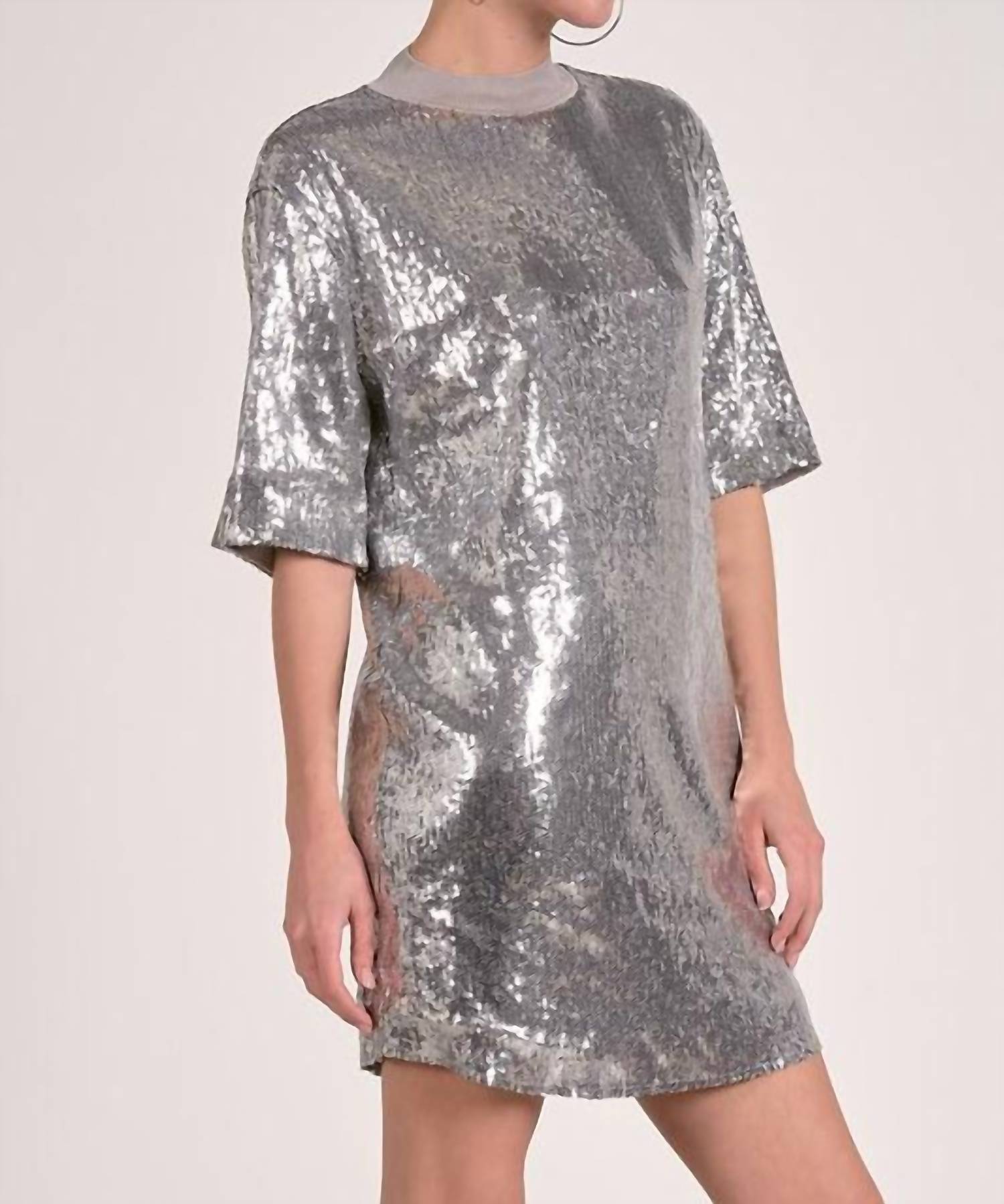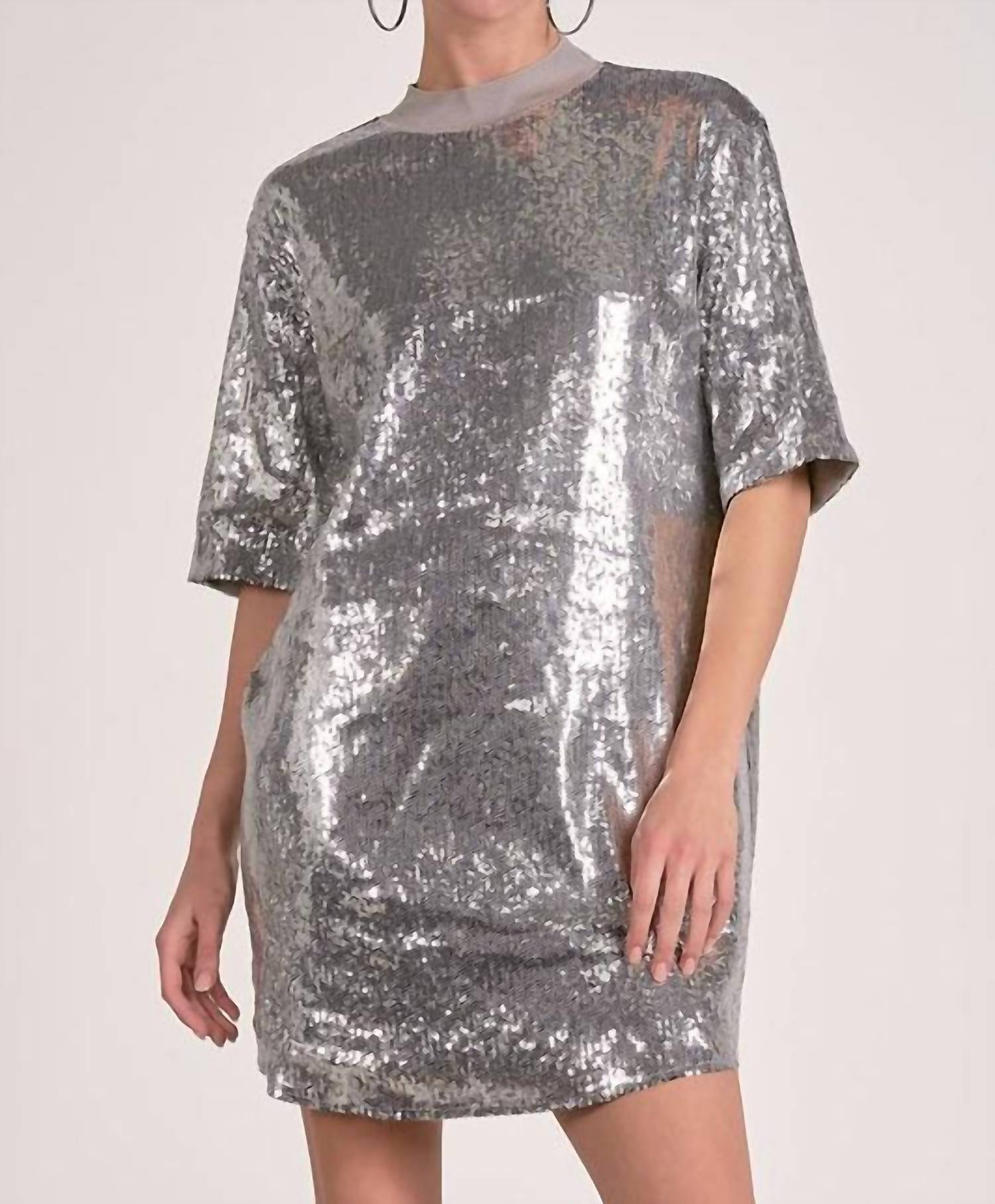 The kind of easy and flattering dress you'll be reaching for all season long. Turn heads in the ELAN Crewneck Silver Dress, perfect for your next special occasion. Featuring a sleek shift silhouette, this mini dress has elbow sleeves and a crewneck neckline crafted with a textured pattern in a stunning silver hue. Designed without pockets, it offers a simple pull-on style for easy wear. Care instructions advise hand washing and laying flat to dry, ensuring your dress maintains its shine.