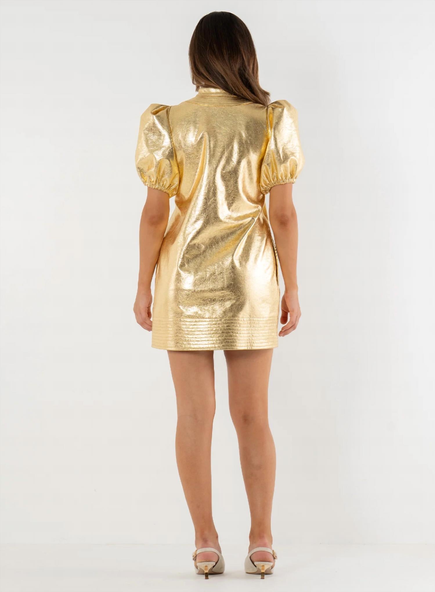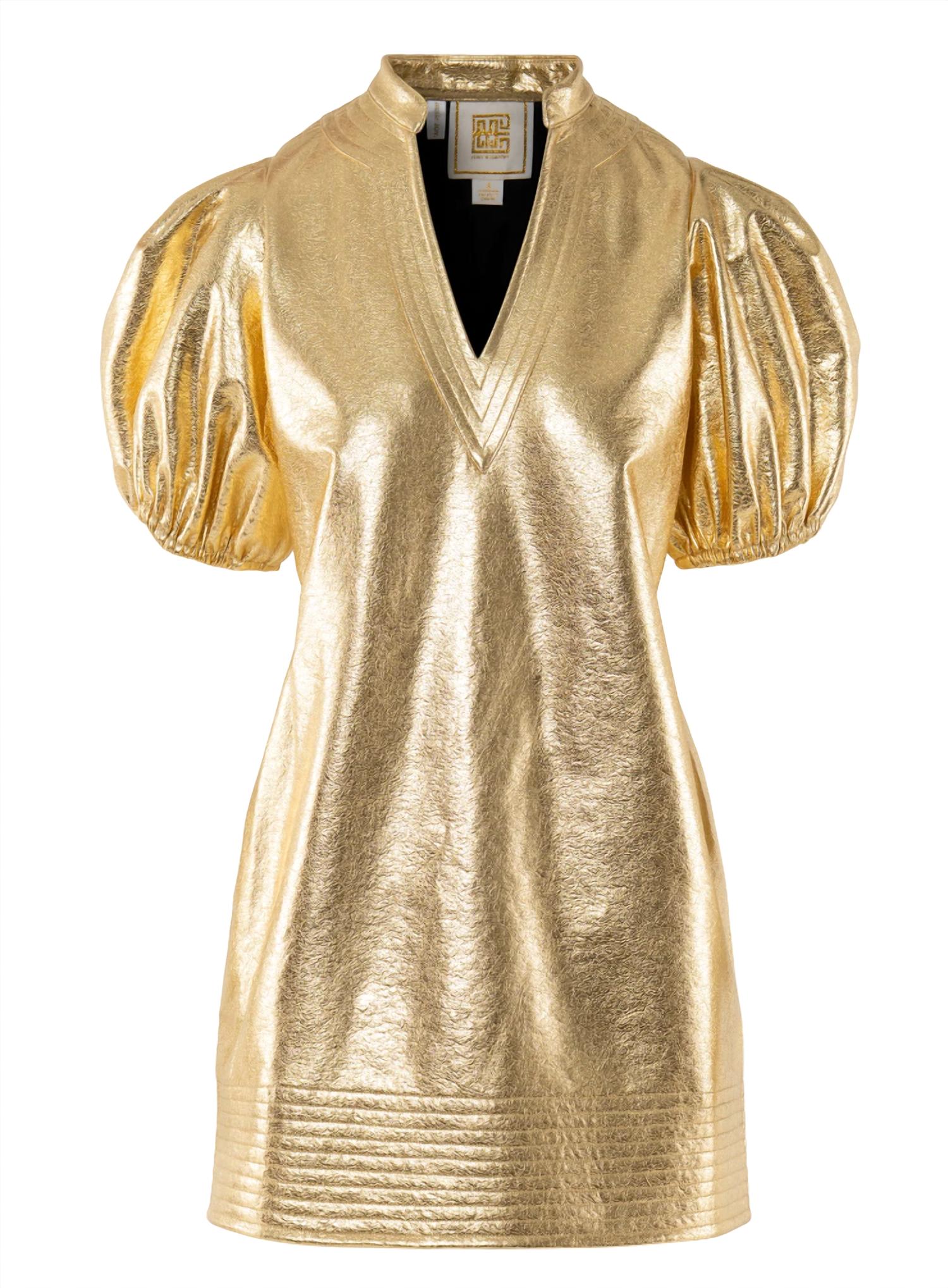 The perfect mini dress for those warmer months. Discover the Hampton Mini Dress by Emily McCarthy, a statement piece in vibrant High Risk Red. Crafted from a blend of 65% Rayon, 30% Nylon, and 5% Spandex, this dress flaunts short puff sleeves and a mandarin-style collar. Side pockets enhance its functionality while vegan leather trim provides a stylish contrast. With a tailored silhouette, this dress is perfect for your summer vacation wardrobe. Care: Hand wash with gentle detergent, cold water preferred; hang dry. Model Victoria is 5'11" with a 24" waist, usually wearing size XS.