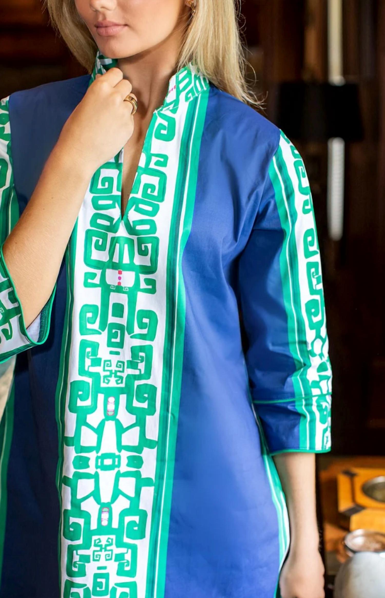 The kind of easy and flattering dress you'll be reaching for all season long. Introducing the Heiress Mini Dress by House of MBR, a bold addition to your spring wardrobe perfect for holiday parties. This shirt dress showcases a V-neck with three-quarter sleeves and a classic Bouvier style cut with a stand-up collar. Crafted from a polished and breathable cotton blend, the dress is made in the USA with a composition of 97% cotton poplin and 3% spandex. Closure: Pull-on style. Care: Hand wash and lay flat to dry.