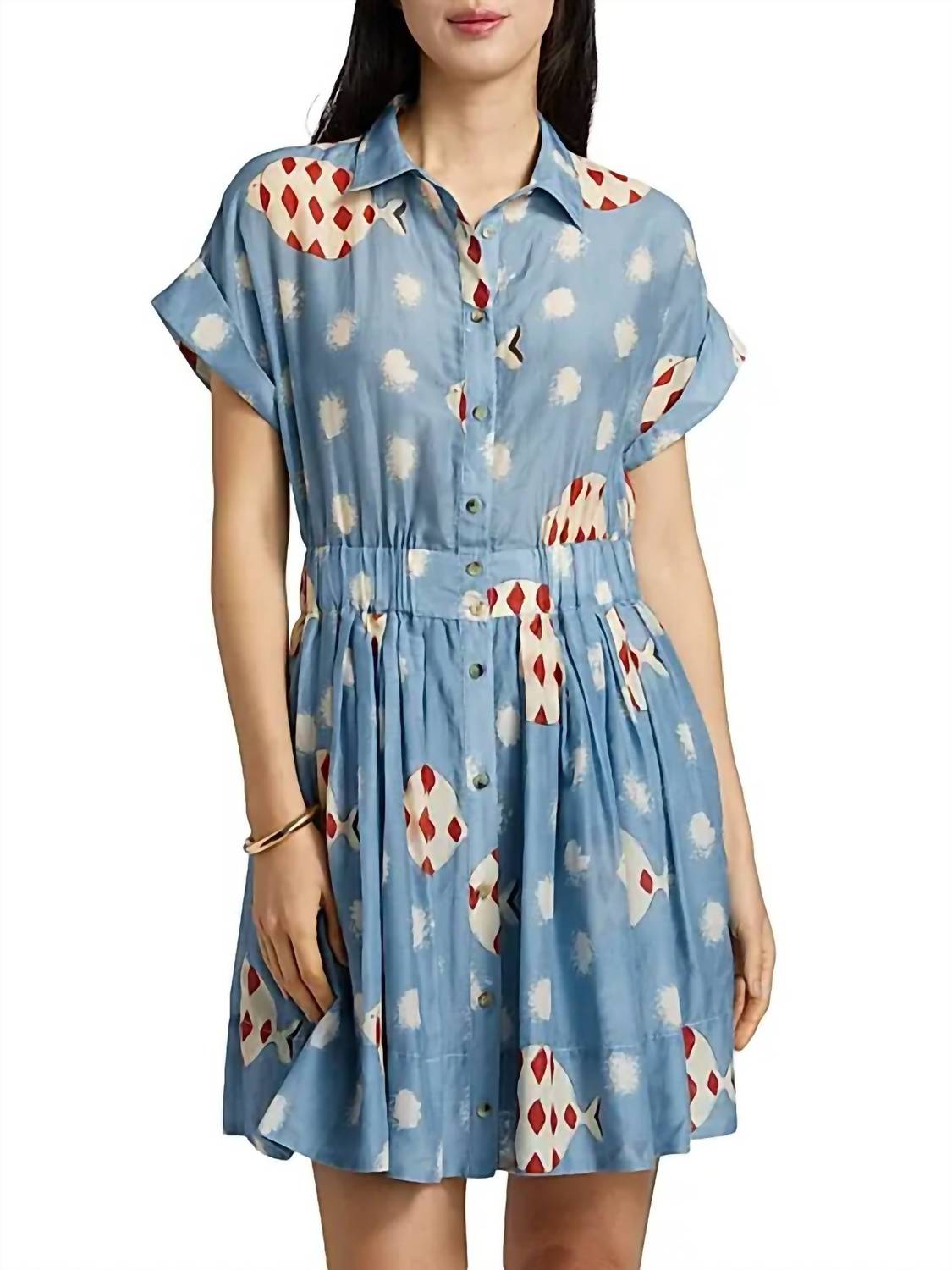 The perfect mini dress for those warmer months. Meet the Howard Mini Dress by Hunter Bell, a chic choice for your summer wardrobe. This short sleeve A-line dress in the vibrant Rising Tide color effortlessly blends style and comfort, crafted from a luxurious cotton blend of 30% silk and 70% cotton. It features a classic collar and a convenient button closure, making it a perfect pick for holiday parties and workwear alike. Care is simple with hand wash and line dry instructions, ensuring your dress stays in pristine condition for any occasion.