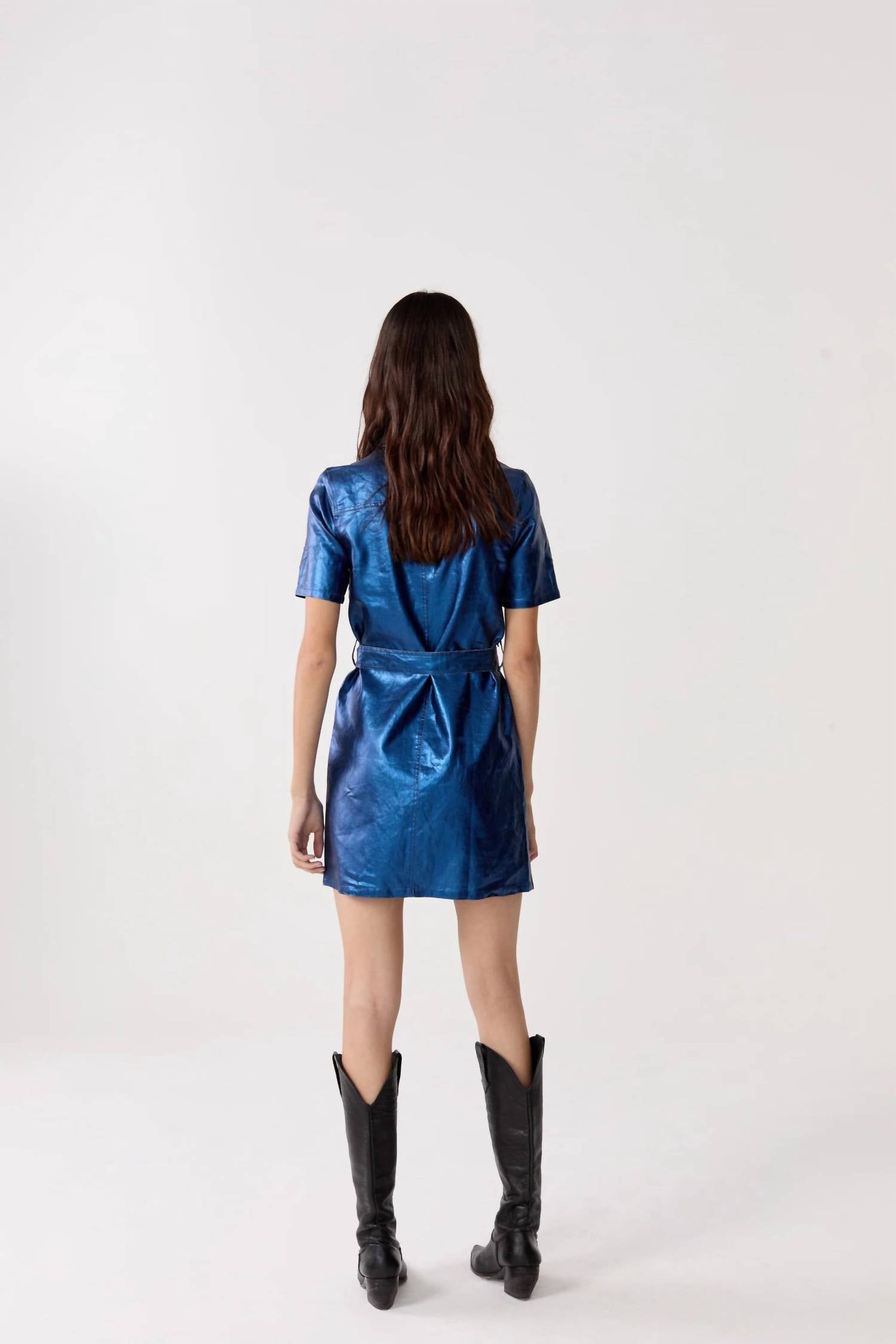 The perfect mini dress for those warmer months. Introducing the Franca Metallic Linen Dress by Lanhtrophy – a chic piece designed for those who love to make a statement. This women’s mini dress features short sleeves and is crafted from 100% natural linen with a striking metallic foil coating, perfect for a summer engagement. It comes with a classic collar and metallic snap button closure, making it a minimalist yet eye-catching choice. Made in Vietnam, this dress adds an element of surprise with its fade-out wash effect that ensures each piece is unique.