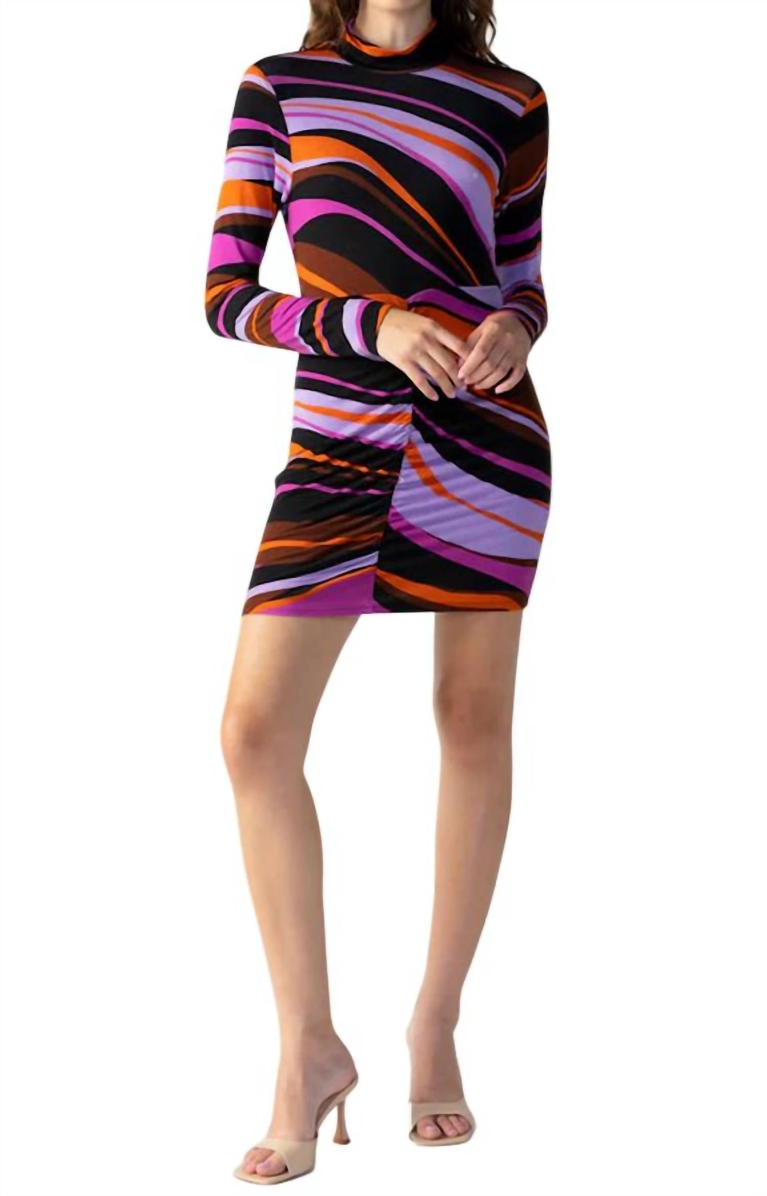 The kind of easy and flattering dress you'll be reaching for all season long. Experience the elegance of the Shirred Skirt Bodycon Mini Dress by Sanctuary in a captivating Gravity hue. This long sleeve dress features a flattering mock neck and is constructed from stretch jersey, combining 95% Rayon and 5% Spandex for a fitted silhouette. With a length of 23 inches, a bust measurement of 30 inches, and sleeves measuring 31 inches, this dress promises a perfect fit. Imported and designed for holiday parties, this boho chic piece requires machine wash cold with lay flat to dry care. Model is 5'9" and wears size S.