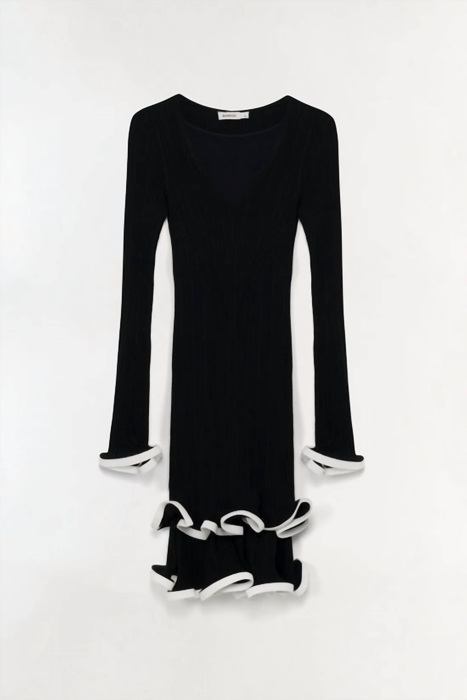 The kind of easy and flattering dress you'll be reaching for all season long. The Avalon Knit Mini Dress by SIMKHAI is a must-have for your vacation wardrobe. Featuring long sleeves and a scoop neckline, this solid black shift dress offers a chic monochrome look. Made from viscose, it is partly lined and features a contrast curled hemline for a unique touch. Closure is a convenient pull-on style, and it is imported. Care instructions require dry cleaning.
