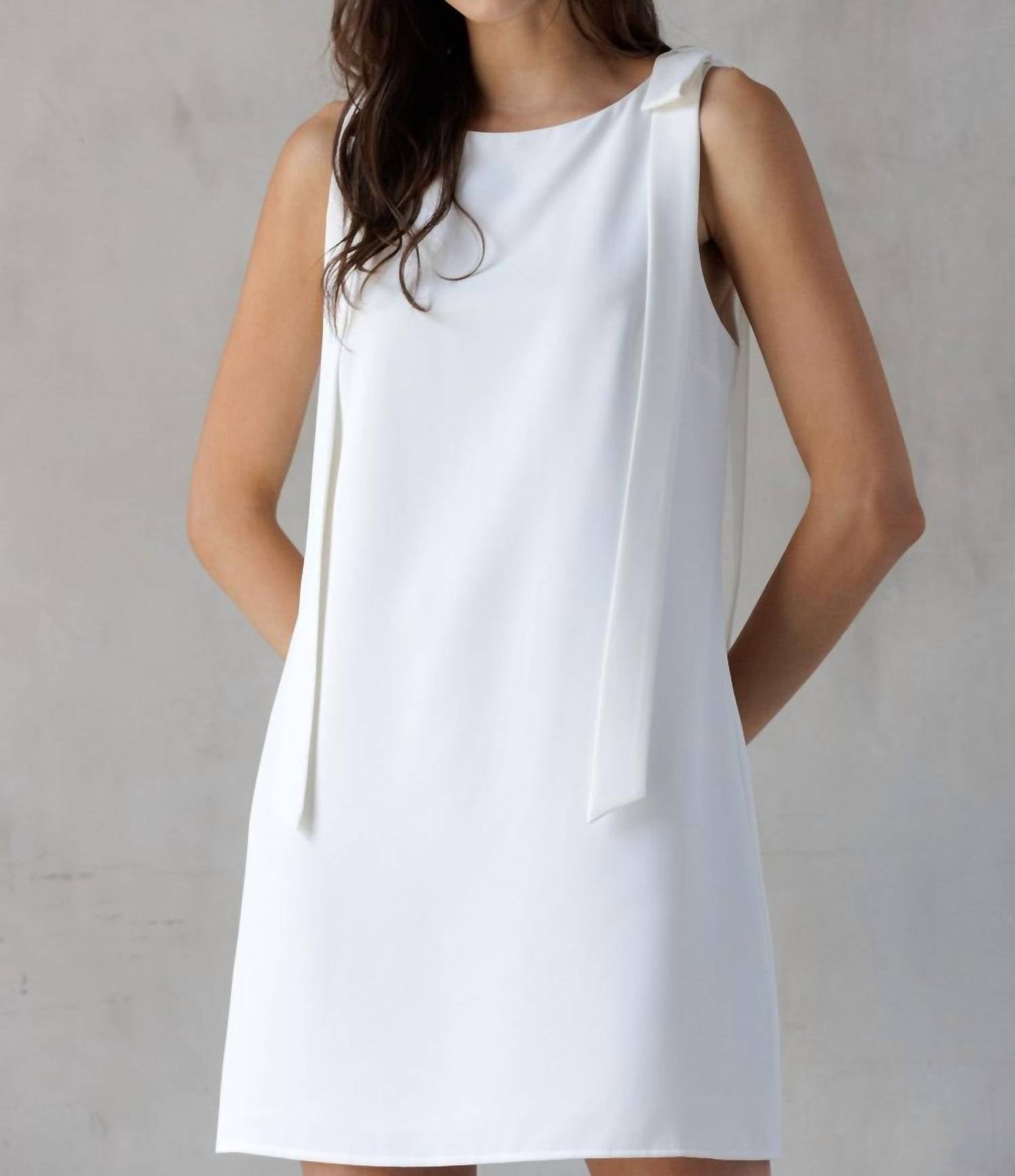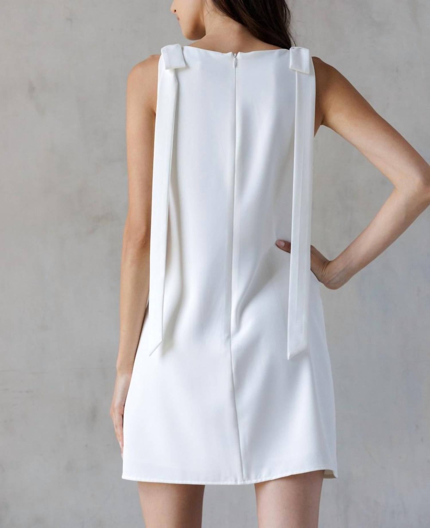 The kind of easy and flattering dress you'll be reaching for all season long. Elevate your summer wardrobe with the Jackie O Bow A-Line Shift Mini Dress by STORIA. This sleeveless mini dress in classic white features a chic crewneck and solid pattern, effortlessly embodying elegance. Crafted with a shift silhouette, it secures with a zip closure for a perfect fit. Add this essential to your collection for a timeless and sophisticated look.