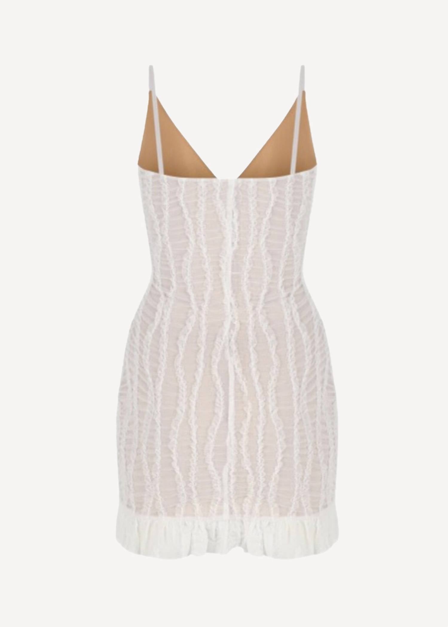 The perfect mini dress for those warmer months. Introducing the Flare Tulle Mini Dress by ZEYNEP ARCAY, a minimalist dream in pristine white. Designed for holiday parties, this women's dress features spaghetti straps and a flattering sheath silhouette with a textured pattern. Crafted from nylon, it ensures effortless sophistication without pockets and includes a convenient pull-on closure. Perfect for spring occasions like Thanksgiving festivities.