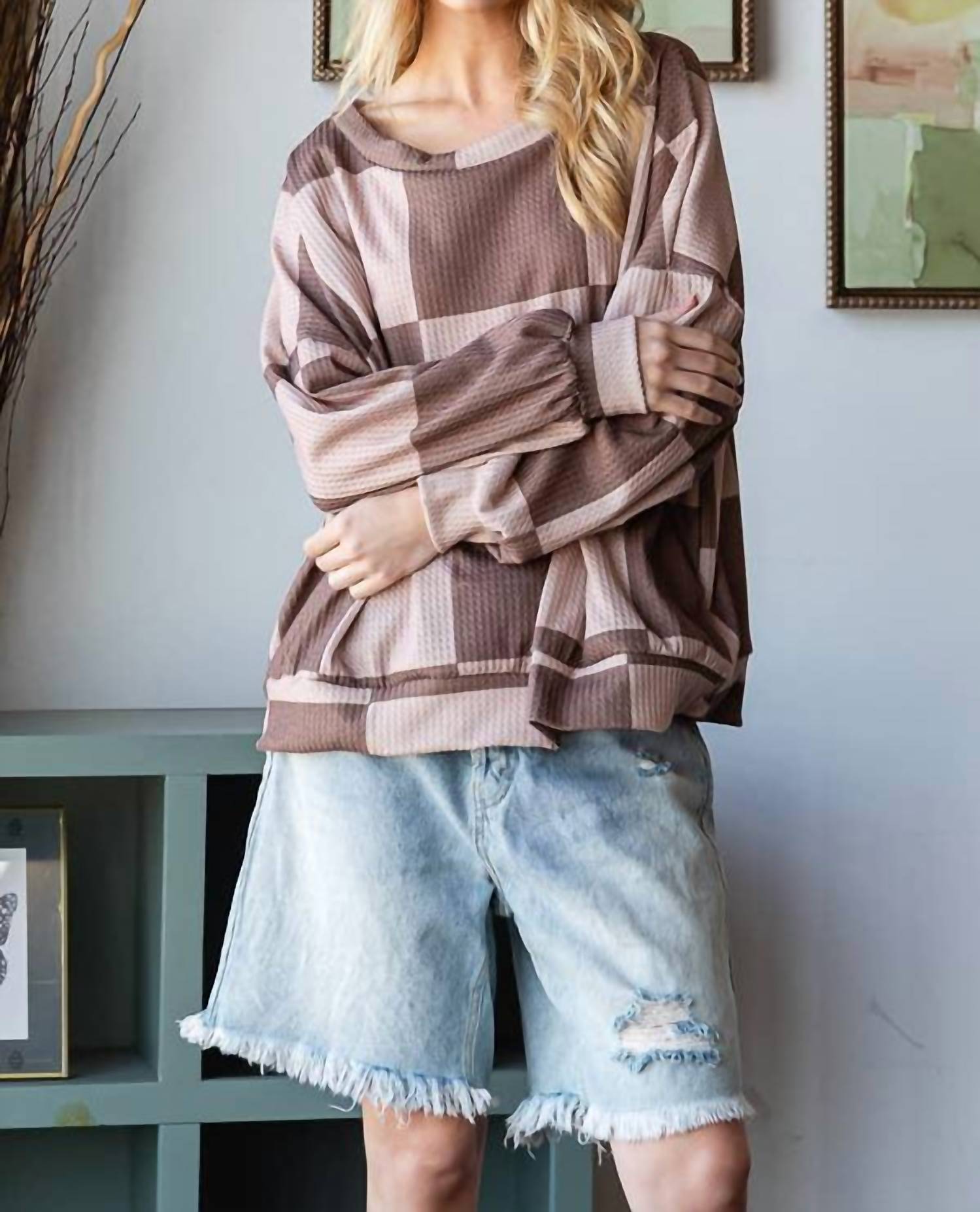 Cooler temps call for layering and we love this adorable sweatshirt for all the obvious reasons. Statement piece in classic mocha. Crafted with a blend of 80% polyester, 15% rayon, and 5% spandex. Offers both comfort and style in an oversized design. Featuring a classic crewneck and pull-on closure. Ensures a relaxed fit. Care is a breeze with machine wash instructions.