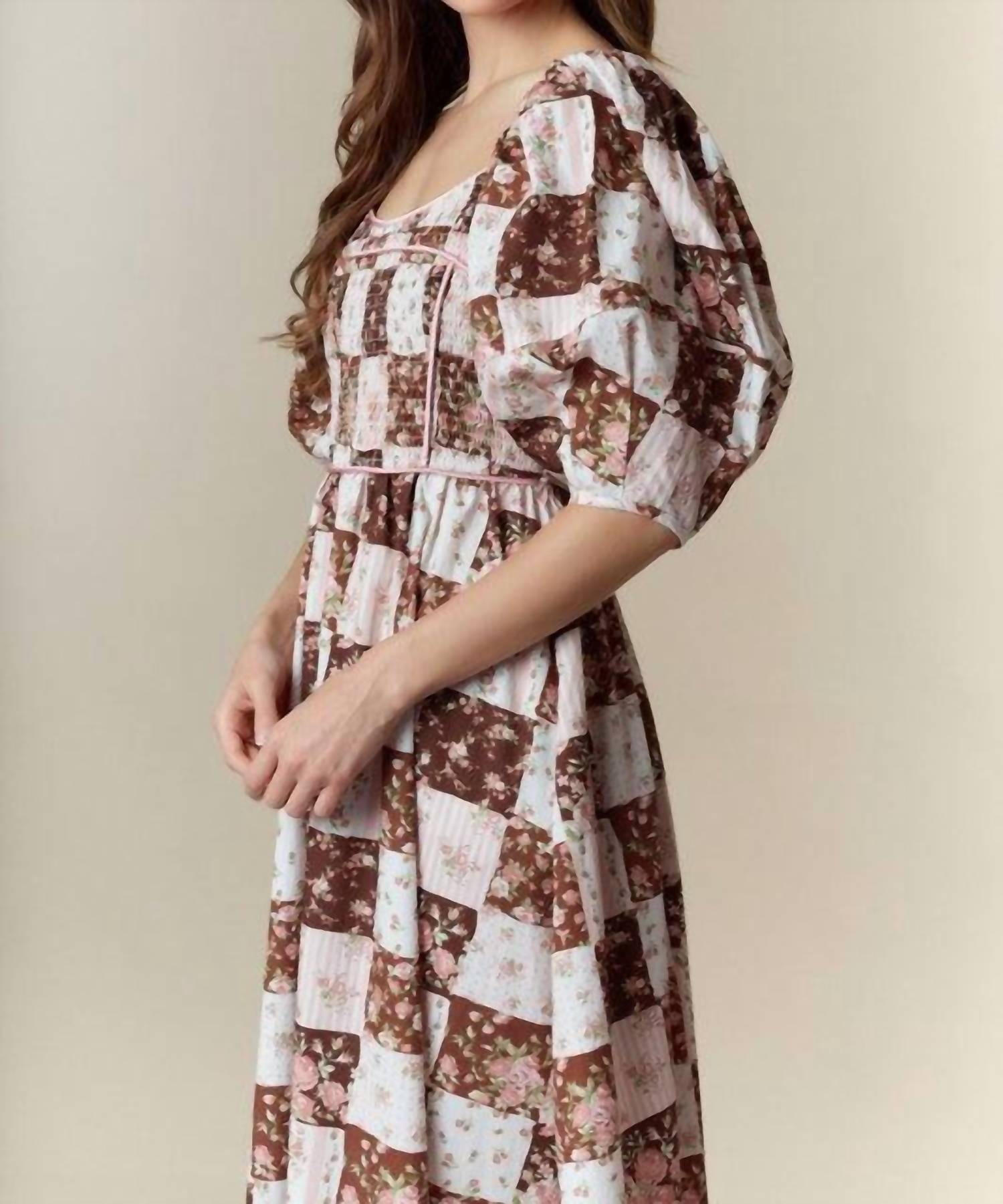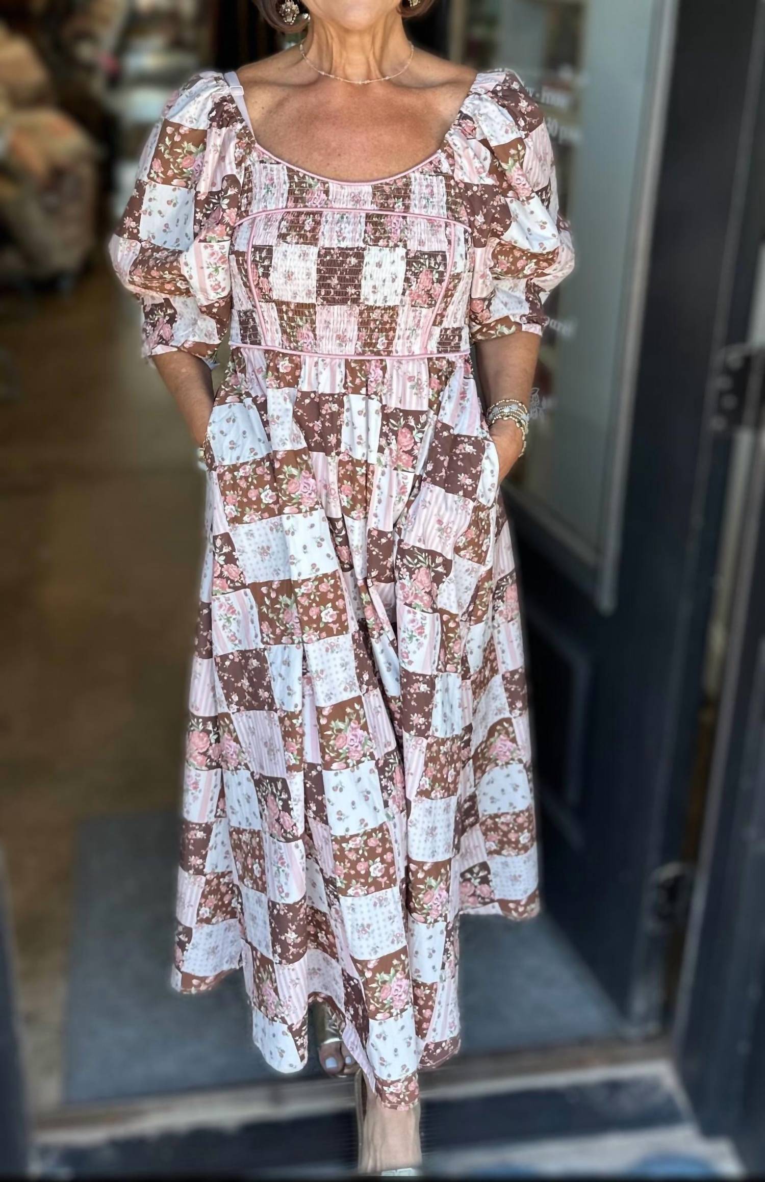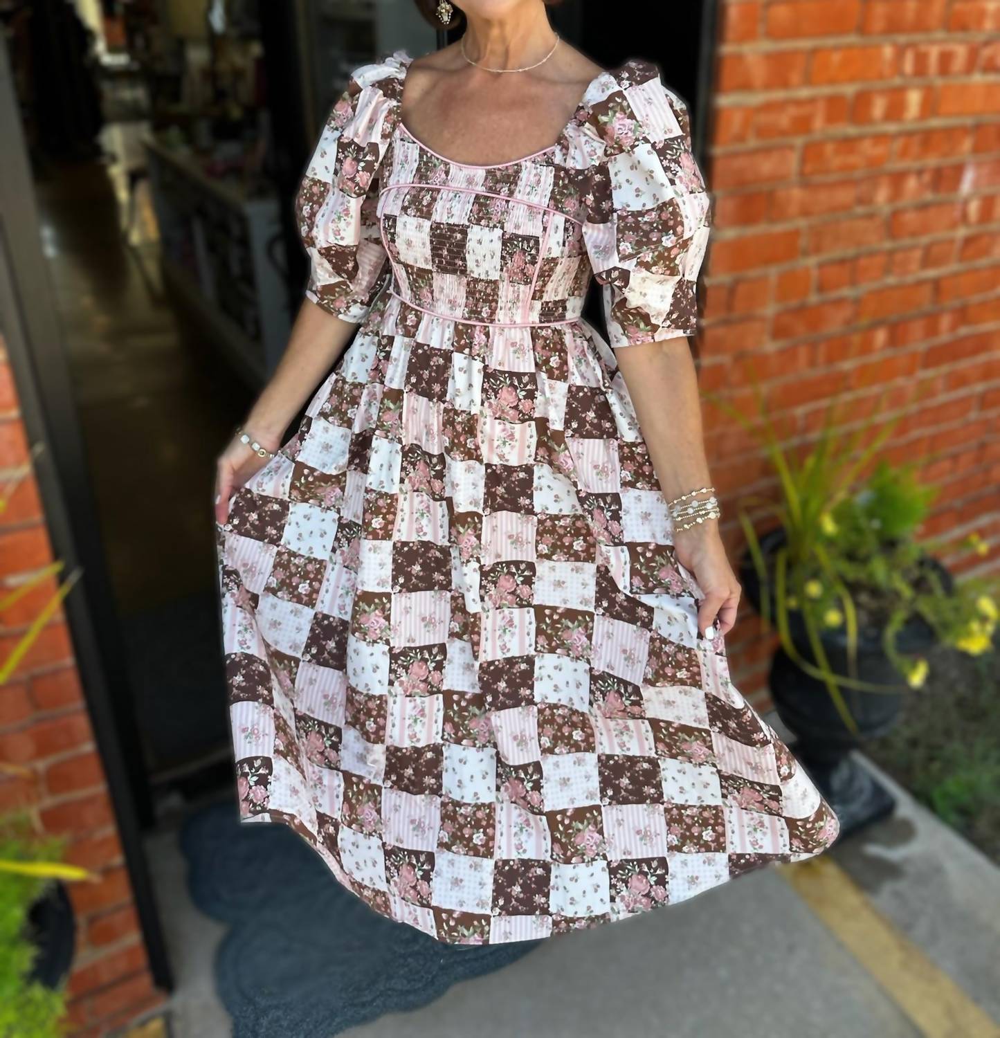 Comfortable and cute, this casual day dress has it all. Discover the Pink Mocha Maven Dress by Peach Love, a perfect blend of comfort and style for any occasion. This A-line casual dress showcases short sleeves and a flattering square neckline adorned with delicate piping detail. Crafted from 100% cotton, its mocha and pink floral pattern seamlessly transitions from day to evening. Closure: Pull on. Pockets: Yes. Ideal for those spring holiday parties you won't want to miss.