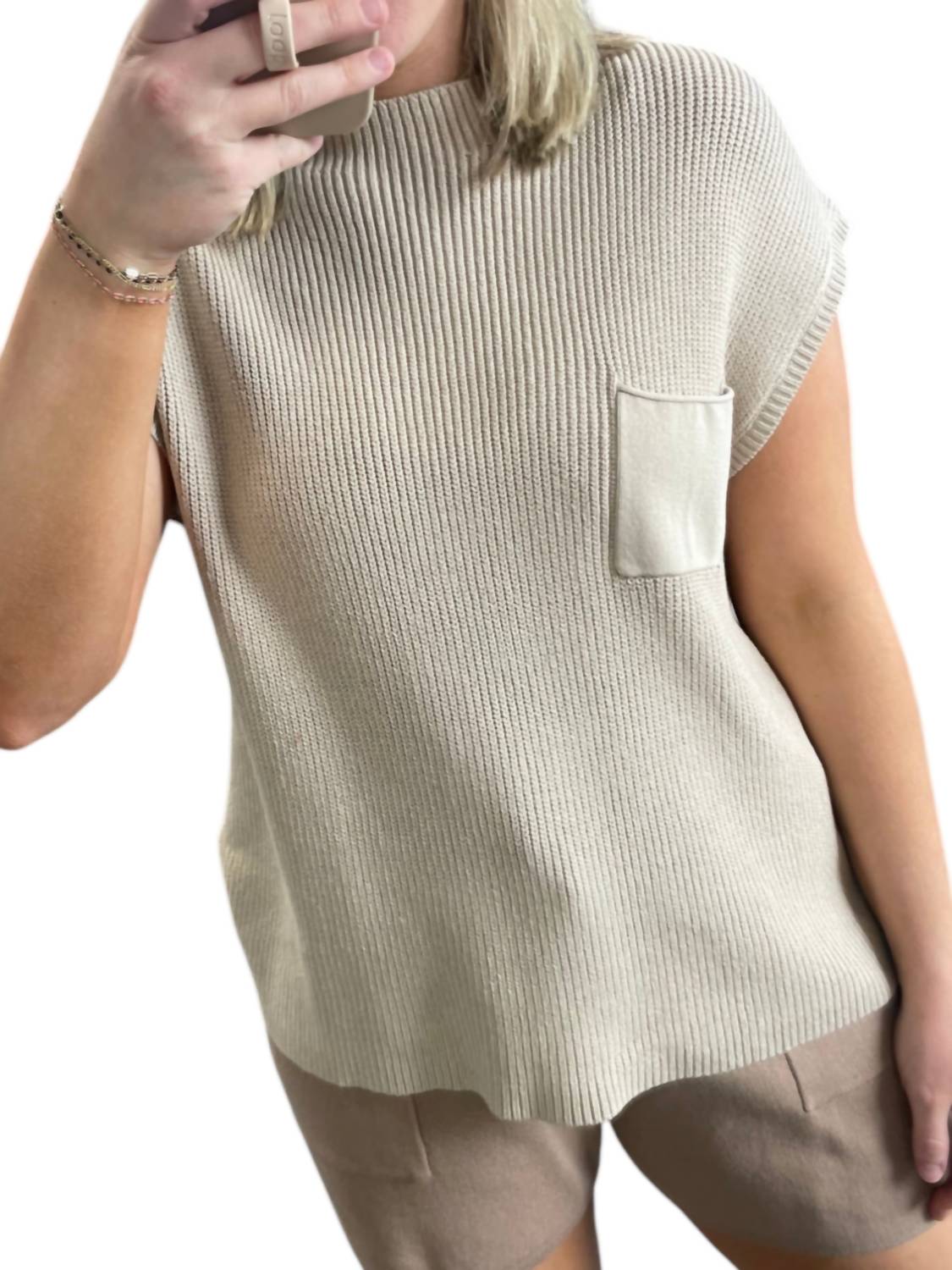 Combining comfort and style with its shell and mocha hues. Top features short sleeves and a crew neckline, designed in a ribbed material for a slightly oversized fit. Shorts with an adjustable waist tie and front pockets in a matching mocha tone. Ensuring practicality and a true-to-size fit that enhances your silhouette. With a pull-on closure. Offers effortless elegance for any casual day out.