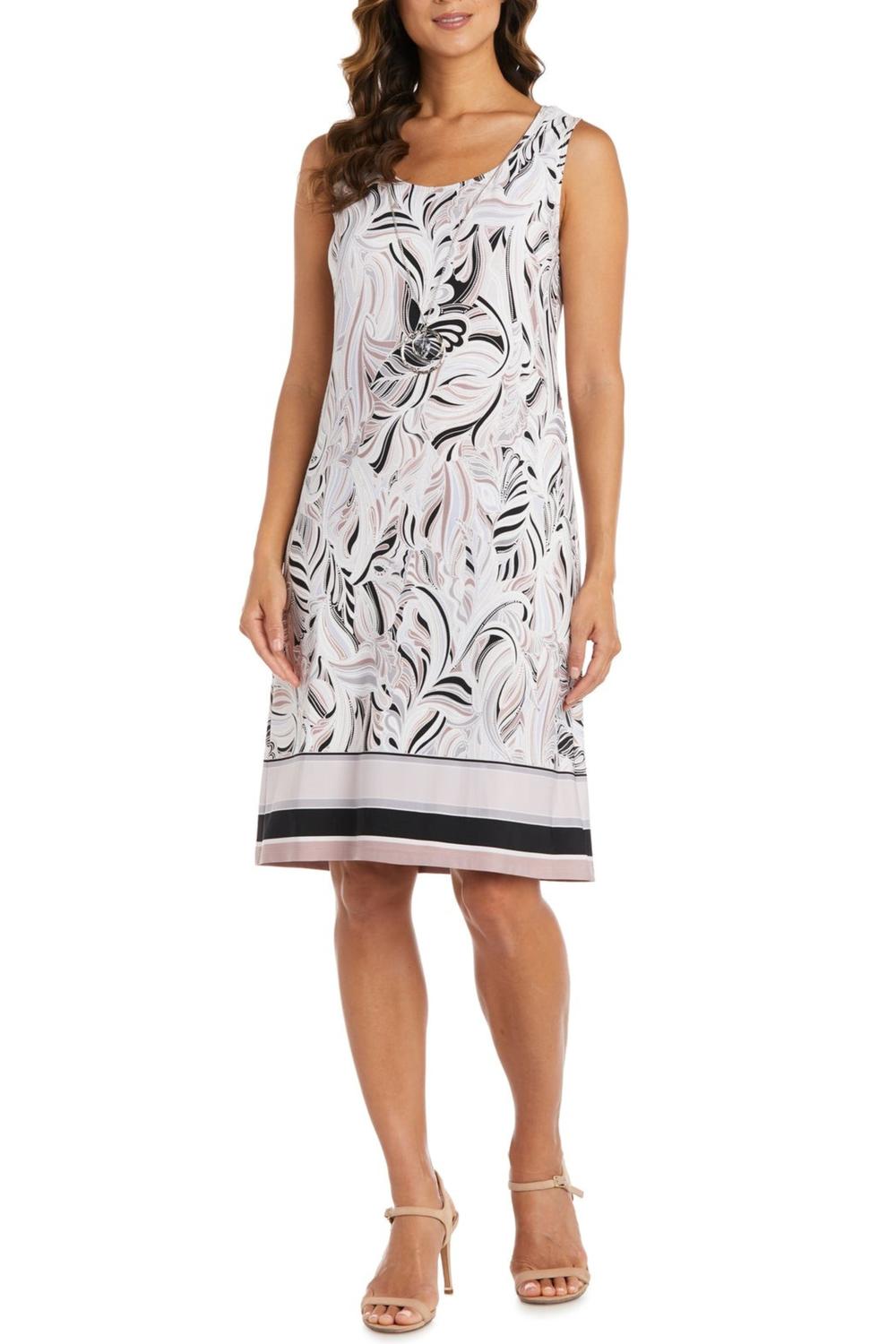 Discover the R&M Richards 3/4 Sleeve 2-Piece Jacket & Dress Set, a stylish mocha loungewear set perfect for various occasions. This ensemble features a three-quarter sleeve open front jacket paired with a sleeveless dress, both crafted in a comfortable jersey blend of 95% Polyester and 5% Spandex. With a convenient pullover construction and attractive scoop neckline, this outfit offers effortless elegance without the need for closures. Care is simple, as it is machine washable on a gentle cycle, making it a practical yet chic addition to your wardrobe.