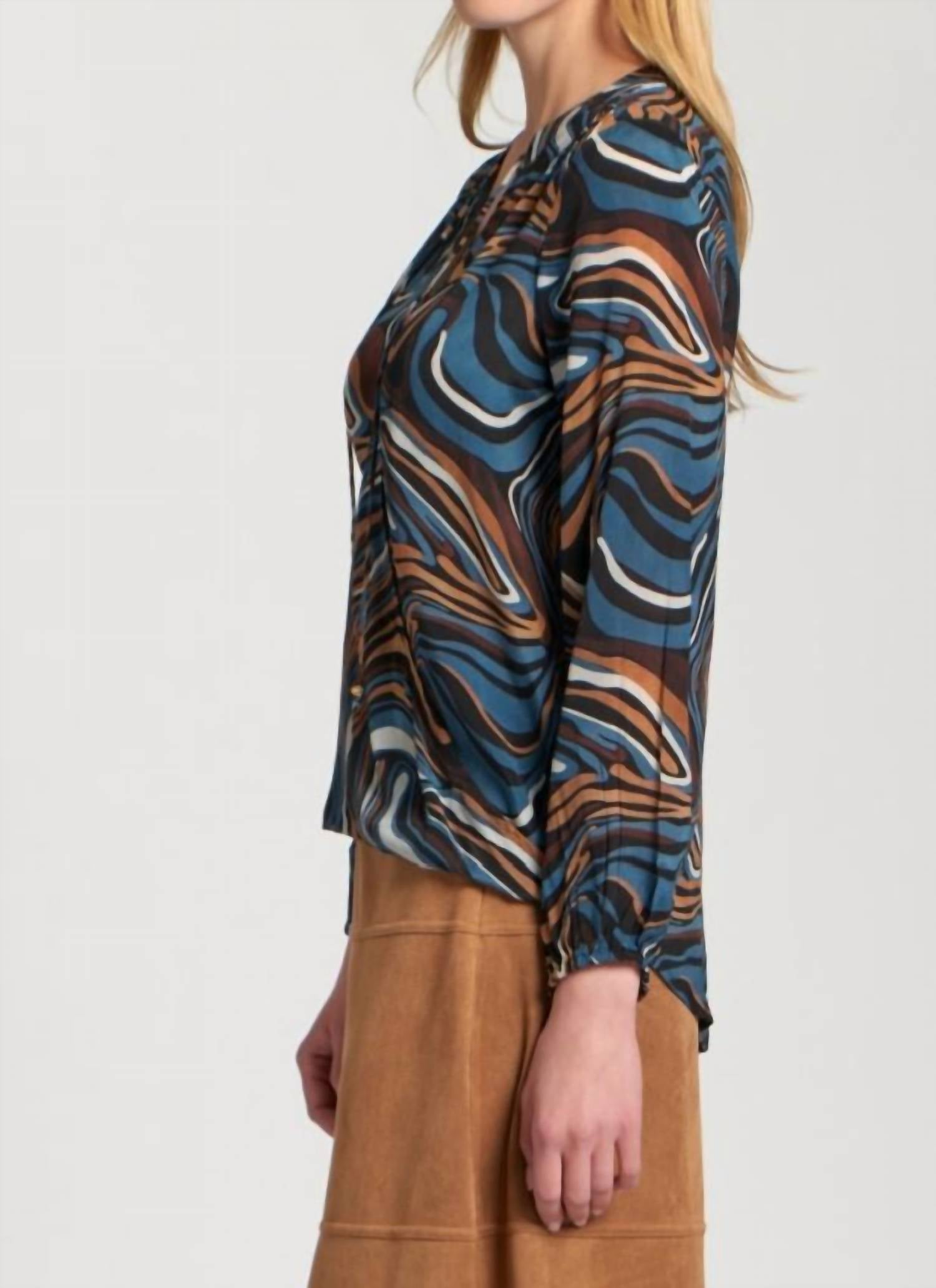 Pair this with your favorite jeans and slides for your next girls night out. Introducing the Crossover Tassel Top by APNY, a vibrant choice in colorful mocha designed to elevate your wardrobe. Featuring long sleeves and a v-neckline with a snap closure, this top adds flair with its tassel details. Crafted from a luxurious blend of 64% cupro and 36% viscose, it's perfect for versatile styling. Care: Dry clean recommended.