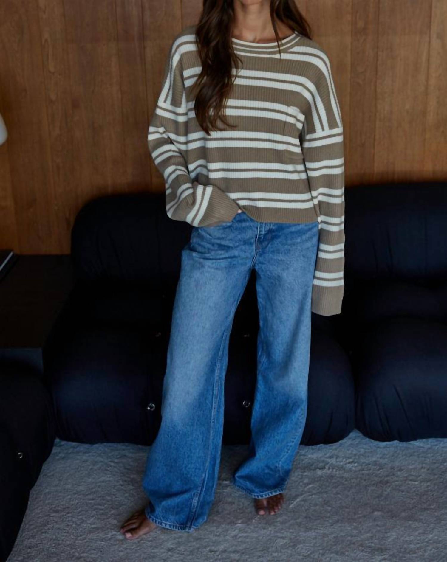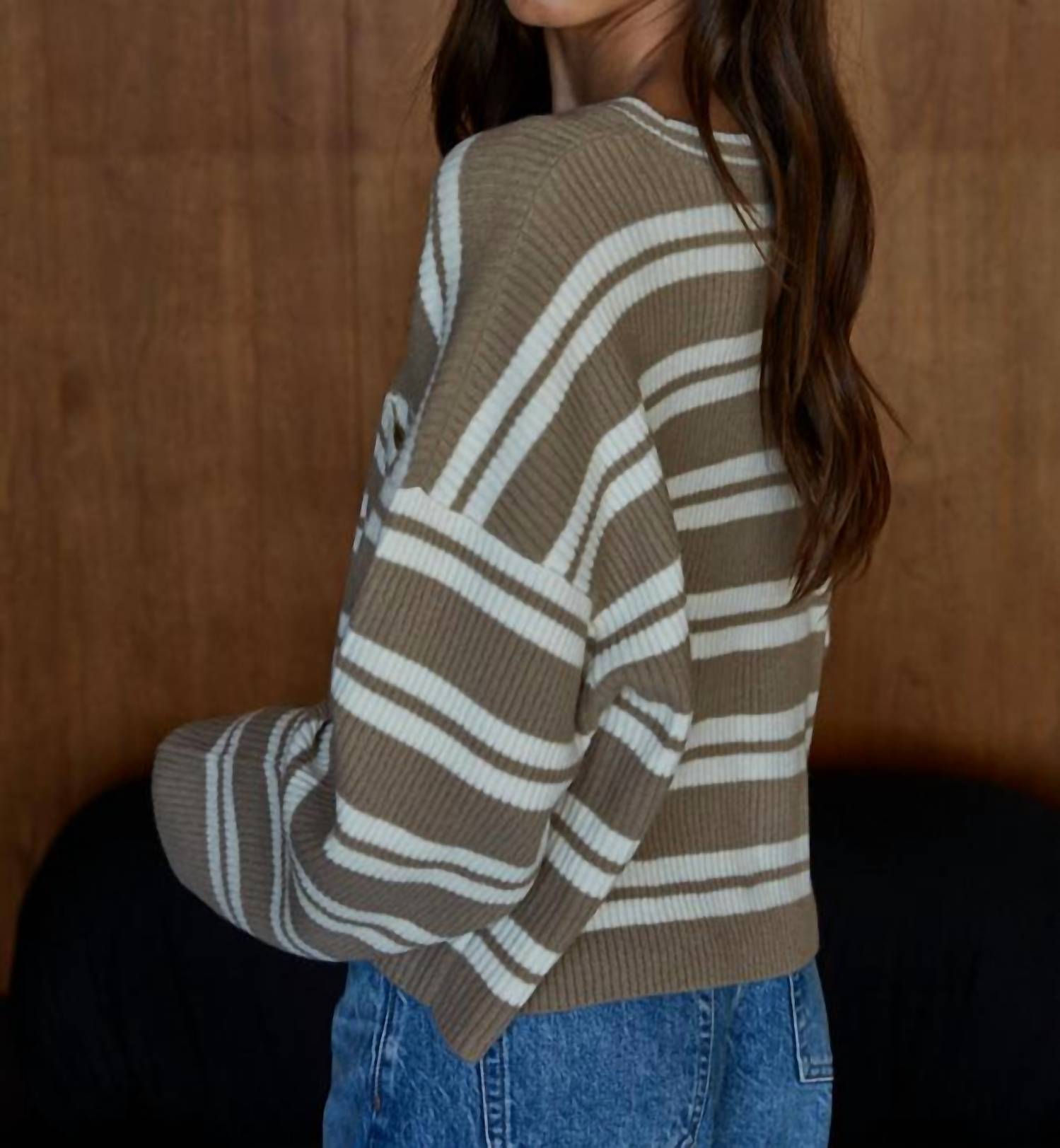 Stay warm and stylish in this versatile and effortlessly cool knitwear staple. Wear it alone or layered, it's the perfect sweater for the season and you'll wish you had it in every color. Introducing the Trail Mix Striped Pullover by By Together, a mocha-hued statement piece perfect for fall festivities. Crafted with long sleeves, this crewneck pullover features a luxurious composition of 49% Acrylic, 40% Nylon, 6% Wool, and 5% Spandex. This pull-on style boasts a chic stripe pattern, ideal for holiday parties or cozying up during Thanksgiving. Care instructions specify hand washing and laying flat to dry, ensuring your new favorite sweater maintains its vintage charm. Length measures from 21.375" to 22.375" and chest size from 21.875" to 23.875" based on size.