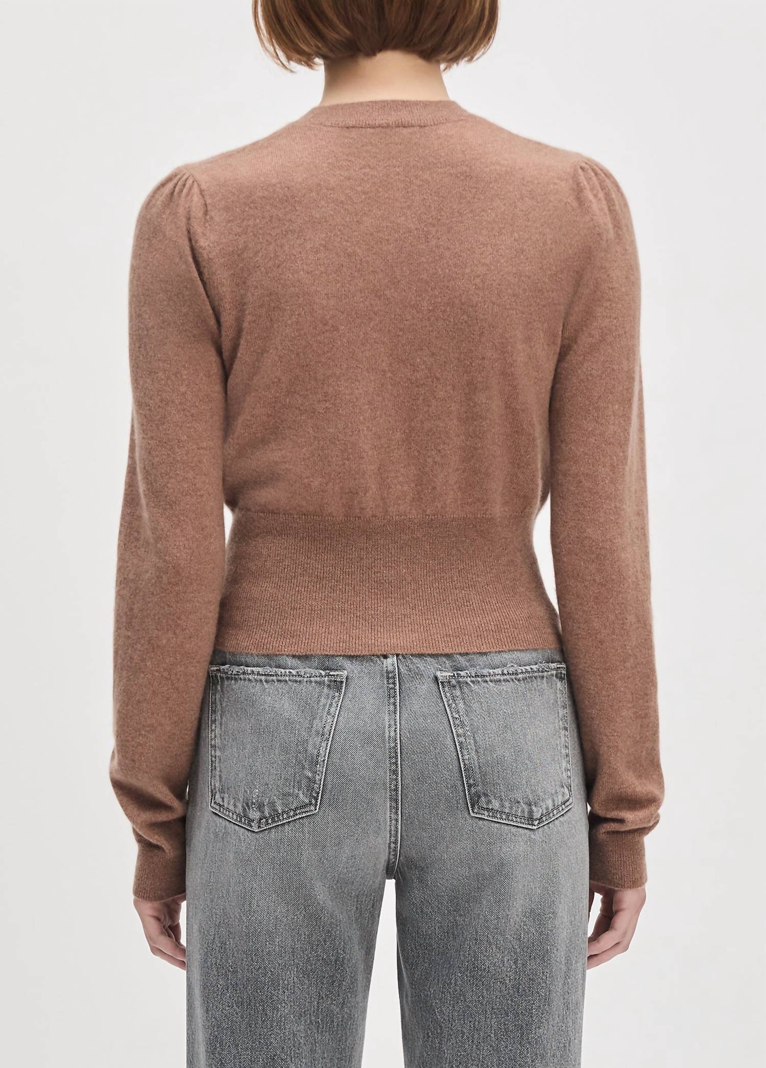 The ultimate go-to sweater, expertly crafted to provide the perfect combination of warmth and style. Its classic design and soft fabric make it a must-have addition to your wardrobe. Introducing the Elena Long Sleeve Sweater by Favorite Daughter, a perfect blend of luxury and comfort in a rich mocha hue. This crewneck top is crafted from 100% cashmere, designed to offer a slim fit ideal for preppy, seasonless styling. Made for women, this solid-patterned sweater is suitable for Fall travel occasions, including Thanksgiving. For care, simply machine wash and lay flat to dry. Model Mia is 5'9.5" and wears a size XS.