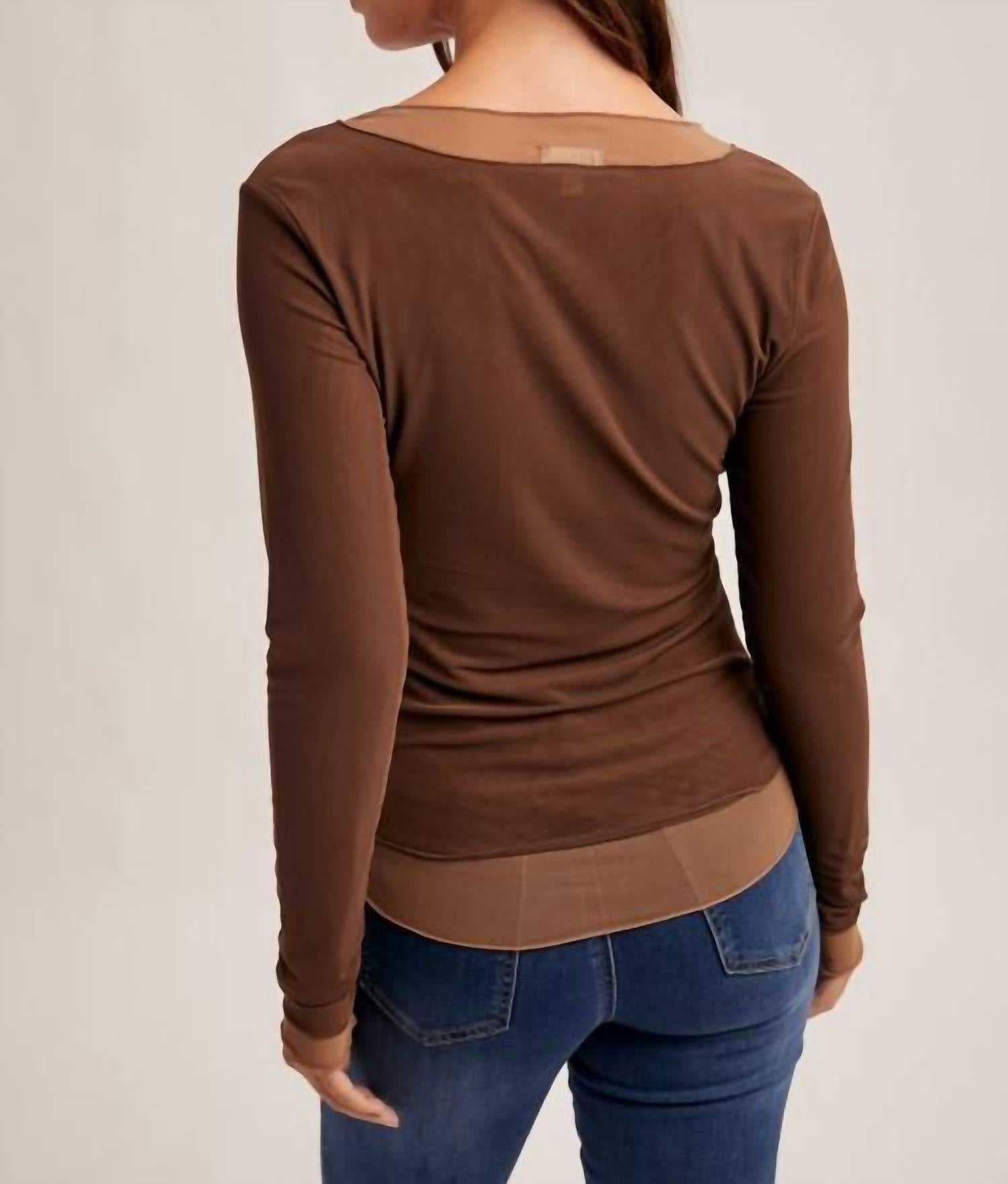 Great fit, cute design, soft fabric. You'll love everything about this long sleeve tee. Effortlessly chic and endlessly versatile, the Double Layer Mesh Top is the layering piece your wardrobe has been waiting for. Made from a lightweight, semi-transparent mesh in rich mocha and tan tones, this top adds depth and dimension to any outfit. Designed for comfort and style, it’s the perfect base layer under vests, tees, shackets, or cardigans. The soft mocha hue pairs beautifully with the earthy color palette of the season — because this year, brown is the new black. Whether you’re dressing up or keeping it casual, this elevated basic gives your look a touch of modern sophistication. Style it your way and watch how effortlessly it transforms your wardrobe staples. Fabric: 95% Polyester, 5% Spandex