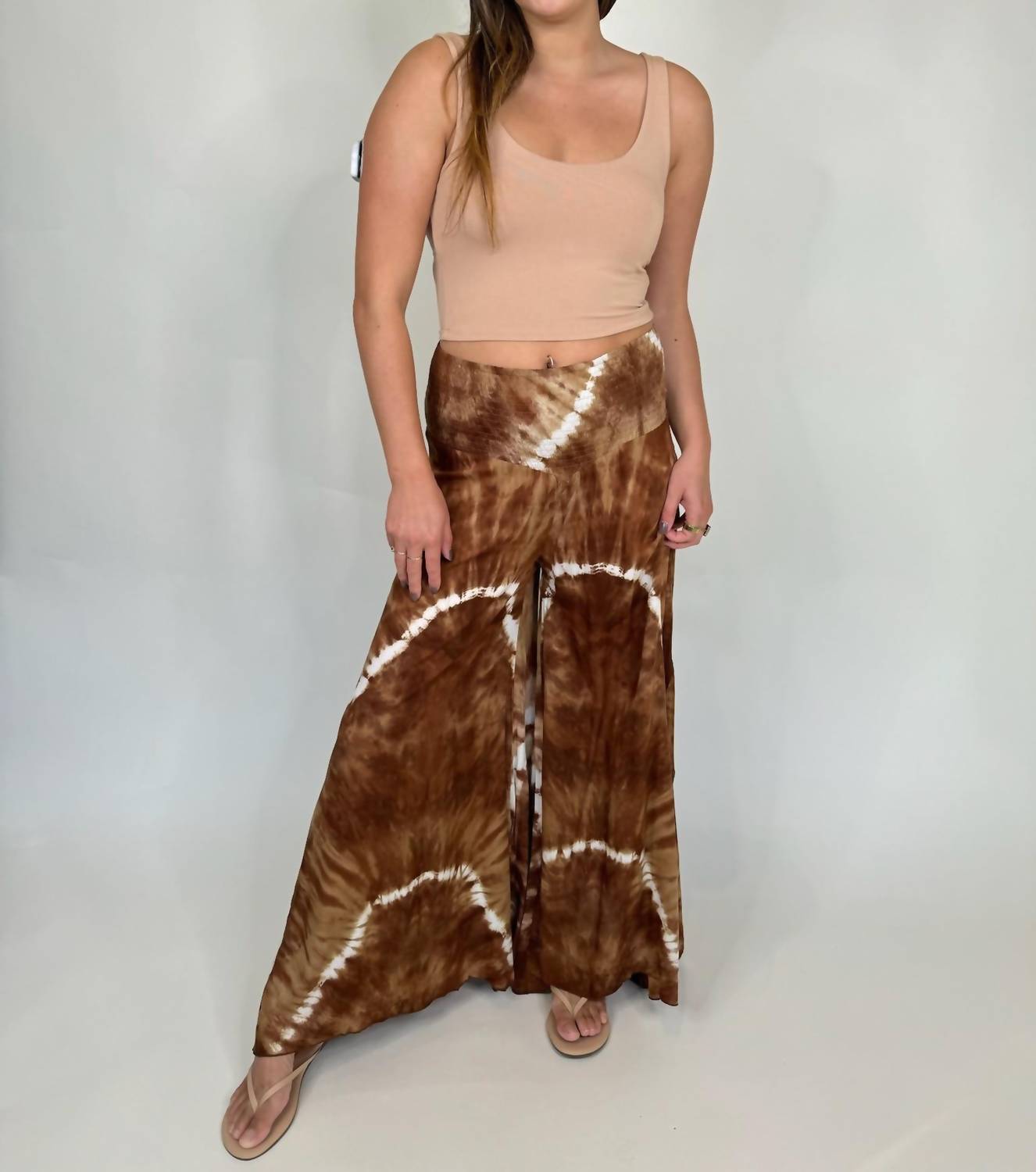 Introducing the Khush Ava Pant, a perfect blend of comfort and style for the modern woman. These wide-leg pants in Brown Mocha/Tie-Dye Storm are crafted from 100% Rayon and feature a smocked elastic waist for a flattering fit. The pull-on design ensures ease, making them ideal for any summer occasion. Care: Hand wash with mild detergent, iron inside out.