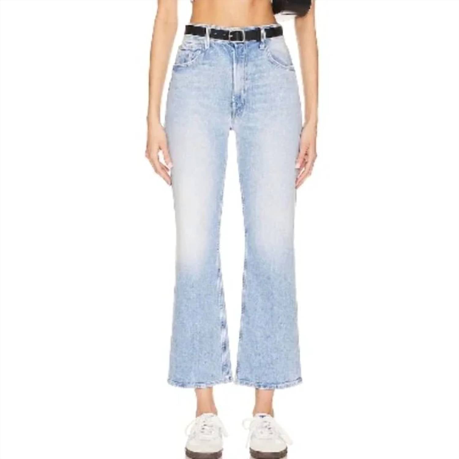 Comfortable and stylish, we love this cropped jean for all of the obvious reasons. Elevate your denim game with these super high-rise jeans, featuring a flared leg, ankle-length inseam, and a relaxed fit designed to sit lower on the hips. Crafted from semi-rigid denim, they offer a light wash with subtle fading, whiskering, and distressed details for a worn-in, vintage-inspired look.