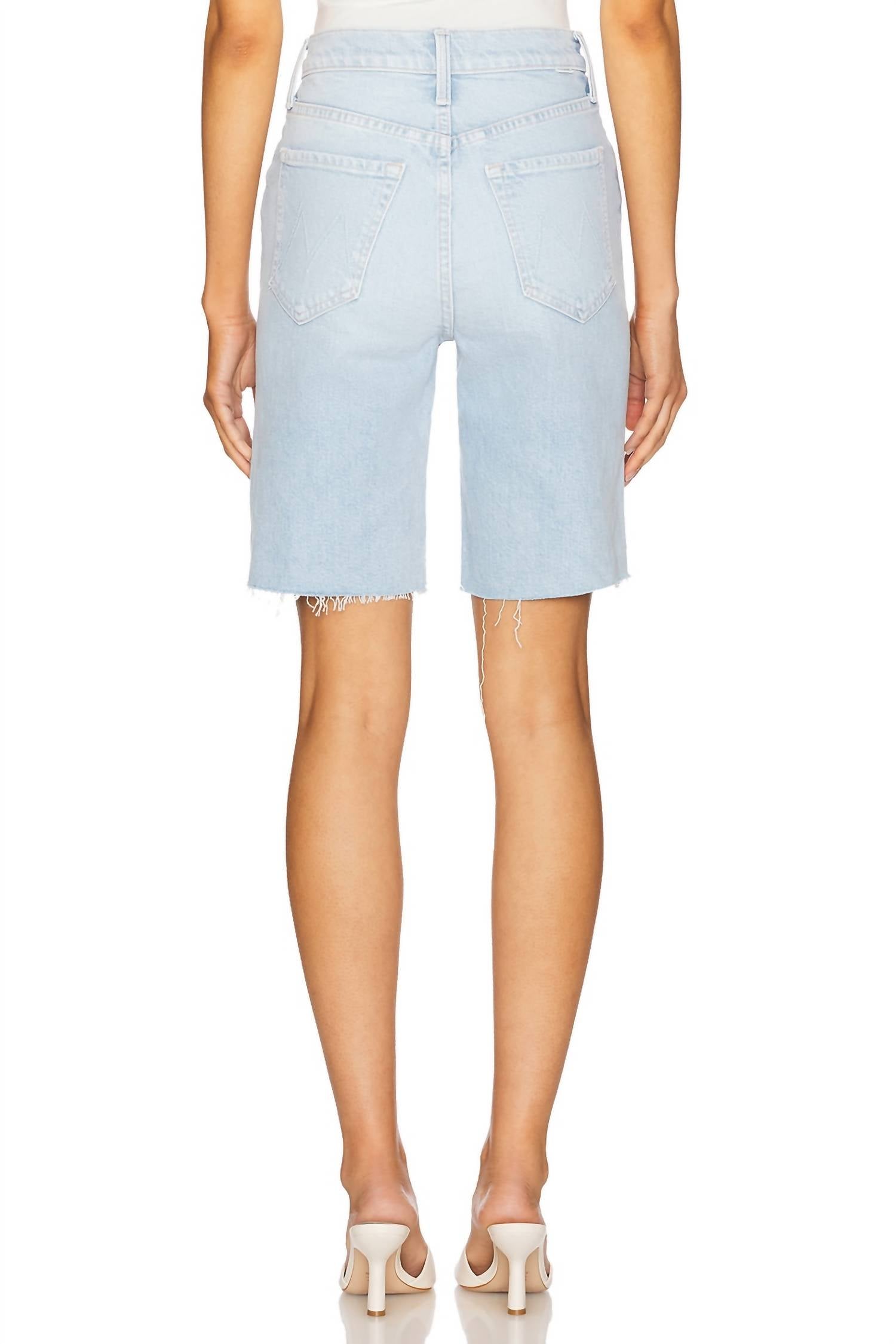A preppy and feminine take on the classic bermuda short. Comfortable enough to lounge in and cute enough to wear out during your next warm weather outing. Cruise through your next Vacation in the Mother High Waisted Rider Bermuda Short. These Women's Bermuda Shorts are crafted from a comfortable Cotton Blend (99% Cotton, 1% Elastane) for a great fit. The Solid Blue wash in the color Cowabunga embraces the classic 90s Fashion trend. They feature a traditional Button Closure and handy pockets. Simply Machine Wash to keep them a fresh staple for Summer.