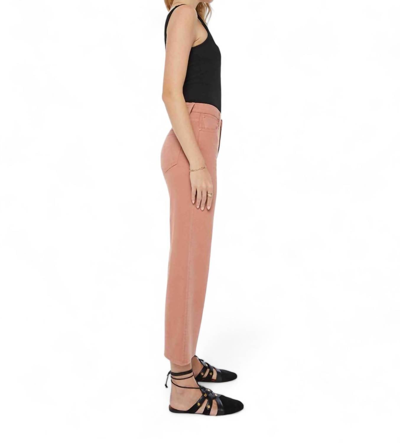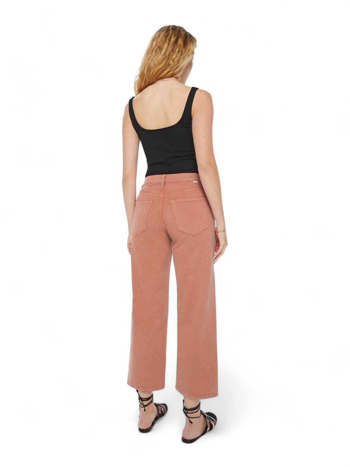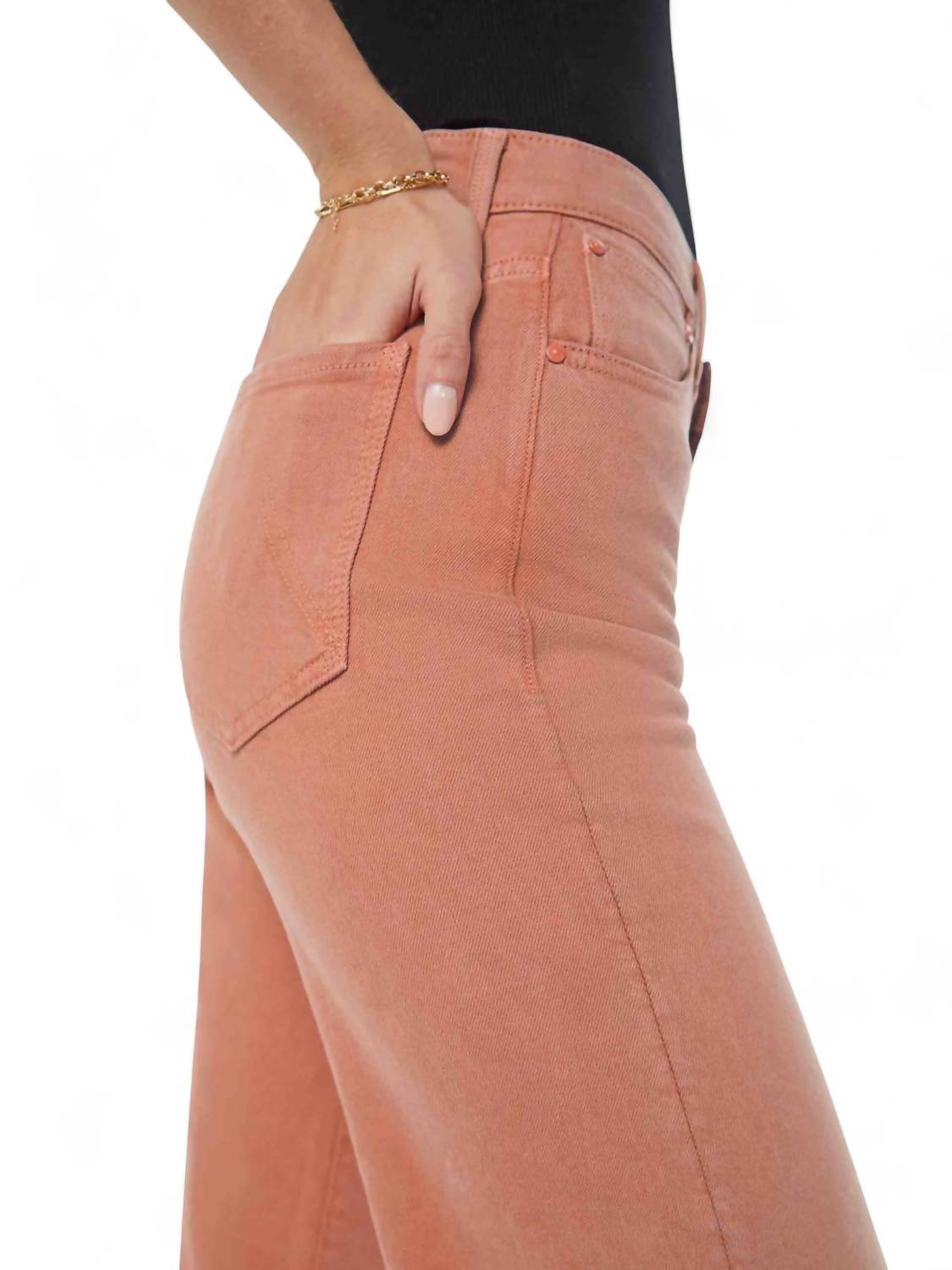 Designed to sit lower on the hips with a loose straight leg and an ankle-length inseam featuring a clean hem. It has a touch of stretch and comes in a bright orange wash with tonal hardware. Made from 54% cotton, 31% lyocell, 13% linen, and 2% elastane. Wash cold. Measurements are as follows: rise 11.25 inches, inseam 27.5 inches, and leg opening 19.5 inches. The model is 5'10" and wears size 26. Made in the USA.