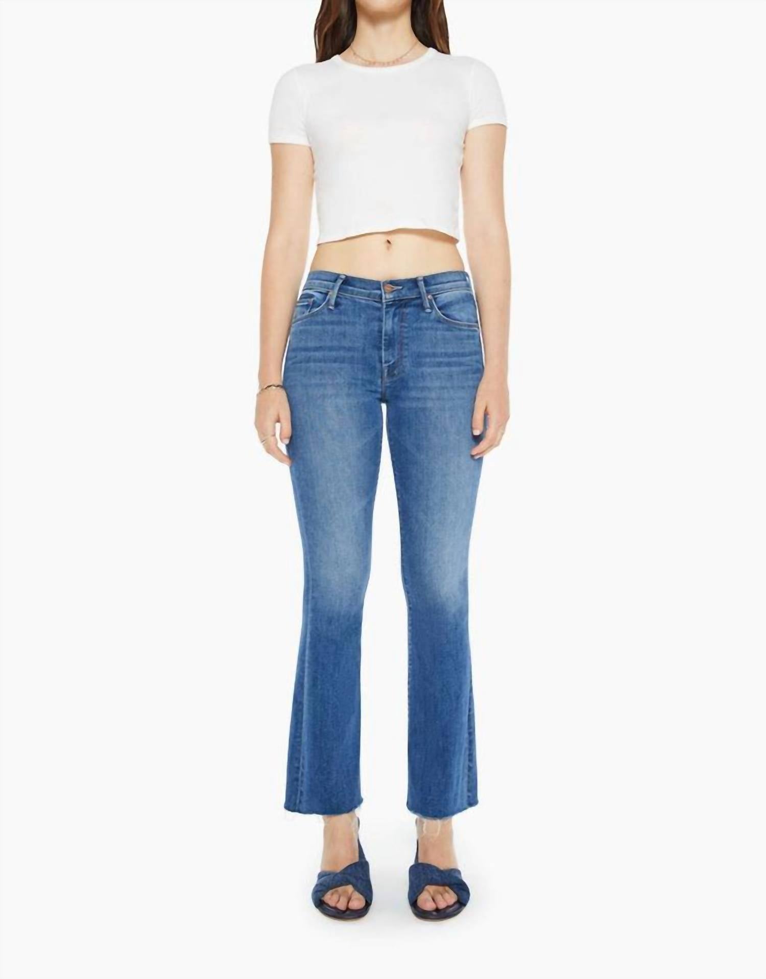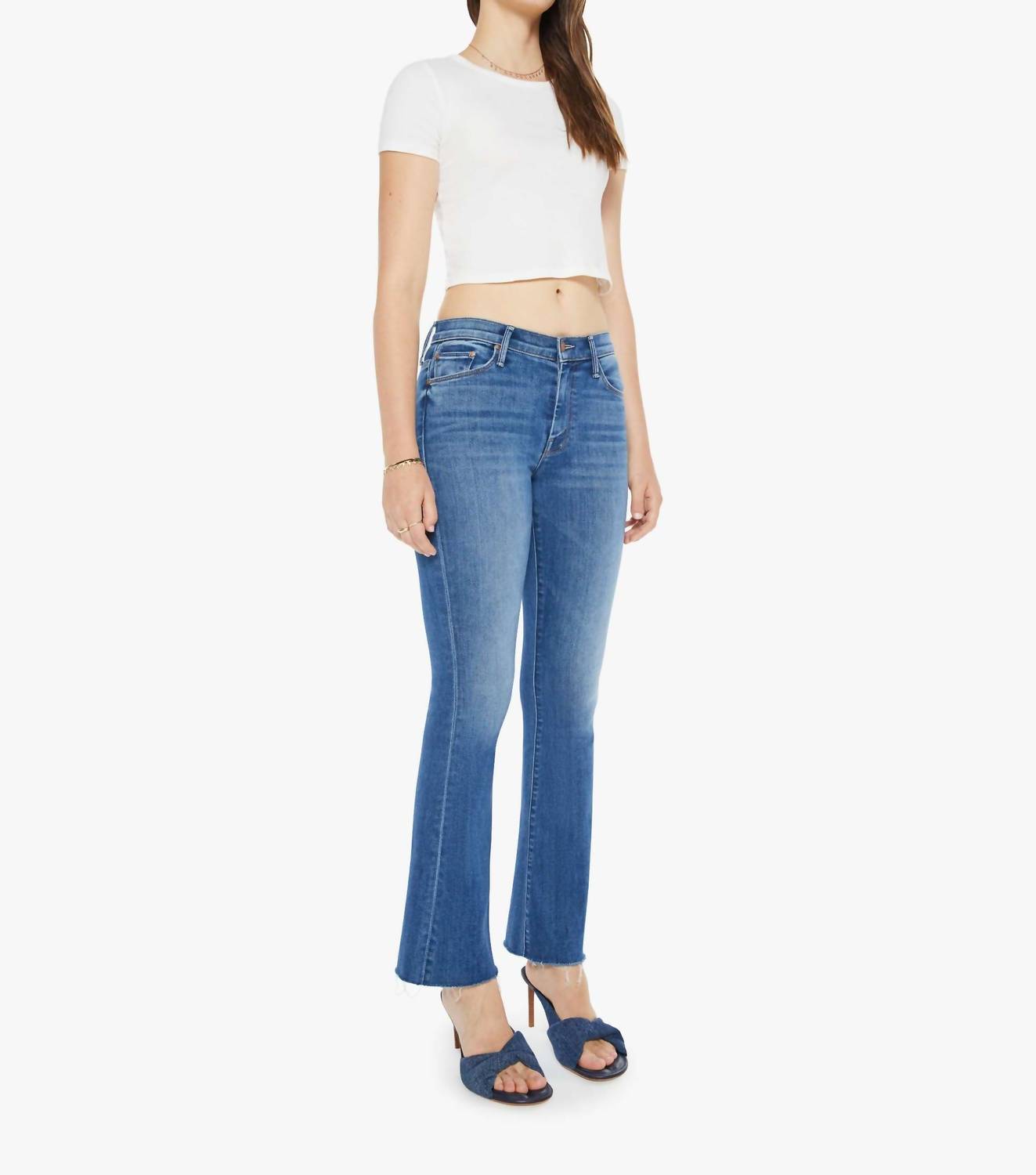 Pair these wide leg jeans with mules, slides or your favorite strappy sandals. Step into nostalgia with The Weekender Fray by MOTHER, a chic pair of mid-rise flares boasting a 31-inch inseam and frayed hem. Composed of a premium cotton blend featuring 81% cotton, 11% lyocell, 6% polyester, and 2% elastane, these jeans offer a regular fit with a flared leg design in a CONNECT THE DOTS medium blue wash. Closure features a button, adding a touch of classic style. Easy to care for, simply machine wash cold.
