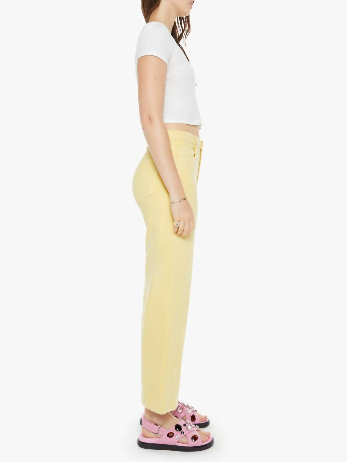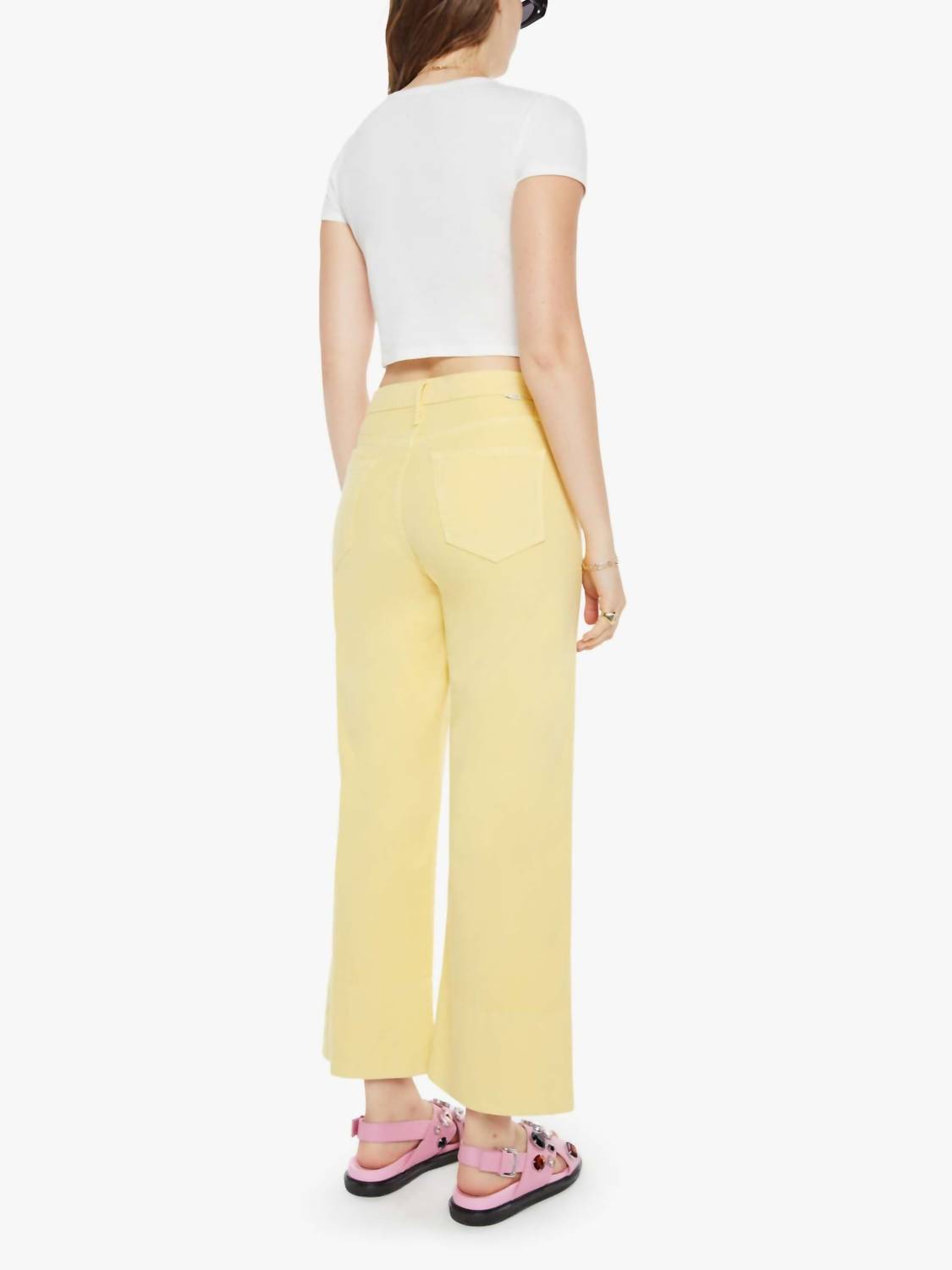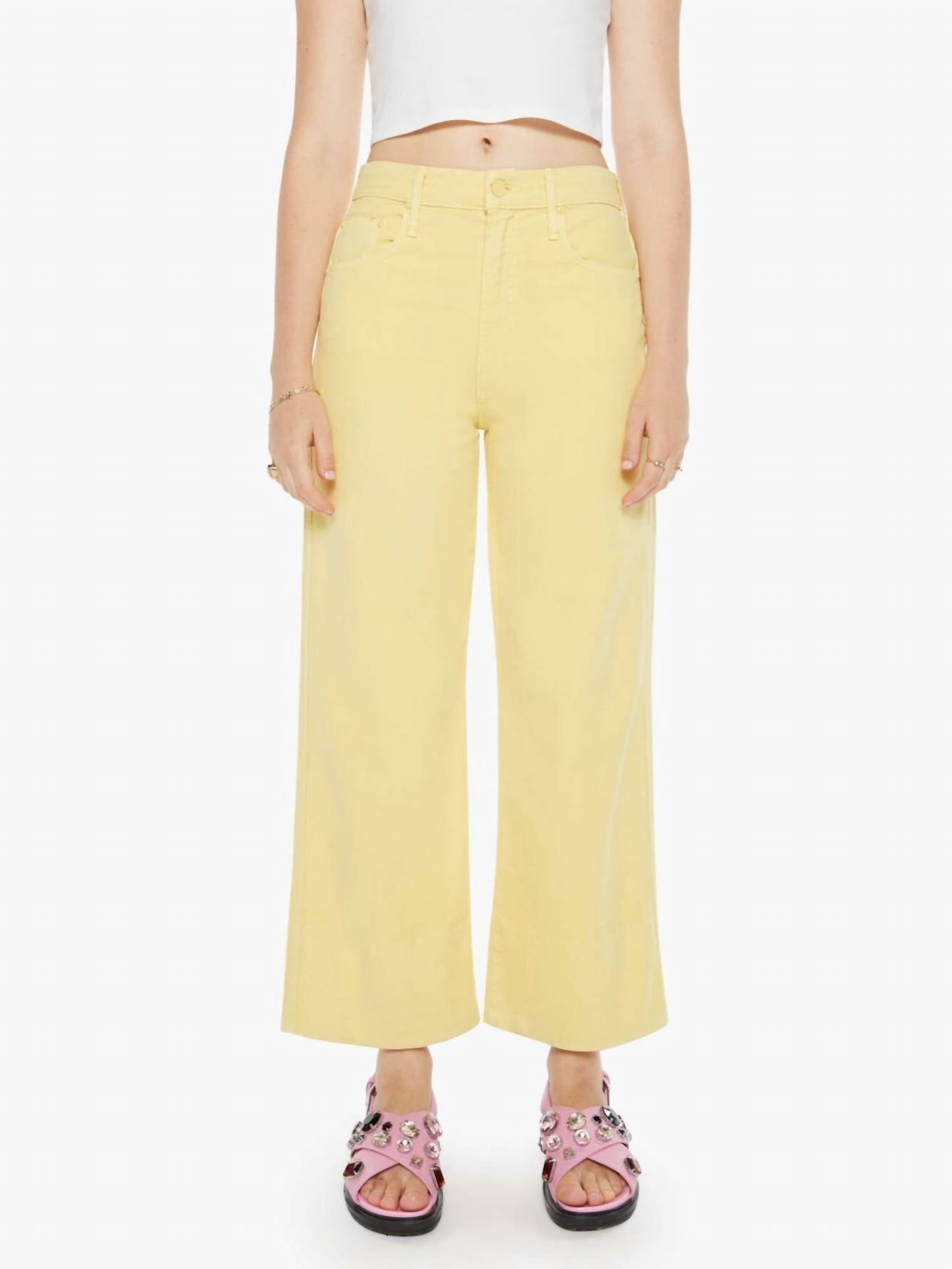 We especially love this cropped jean with a cute pair of slides or sandals. Step into comfort and style with the Maven Wide Hem Ankle Jeans by Mother. Designed with a high-rise waist and wide leg, these jeans offer a loose fit and ankle-length inseam in the refreshing 'Sunshine' wash. Crafted from a cotton blend with a composition of 58% Cotton, 40% Lyocell, and 2% Elastane, they feature a button closure. Made in the USA and easy to care for, simply machine wash them to maintain their fresh look.