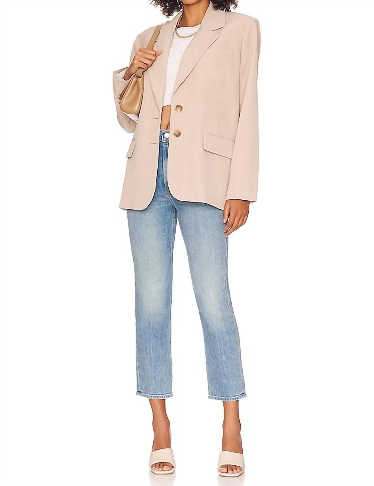We especially love this cropped jean with a cute pair of slides or sandals. Meet the High Waisted Rider Ankle Jeans by Mother, a stylish pair of denim that's perfect for any wardrobe. Crafted from a 98% cotton and 2% elastane blend, these jeans feature a high-rise waist and a relaxed fit with a straight leg style. Made in the USA, they offer a comfortable button closure with a classic 5-pocket design, accentuated by light whiskering and a faded detail for a vintage look. With a 25.5-inch inseam and a sleek 11.5-inch rise, these jeans promise a flattering ankle-length finish, and are easy to care for with machine wash instructions.