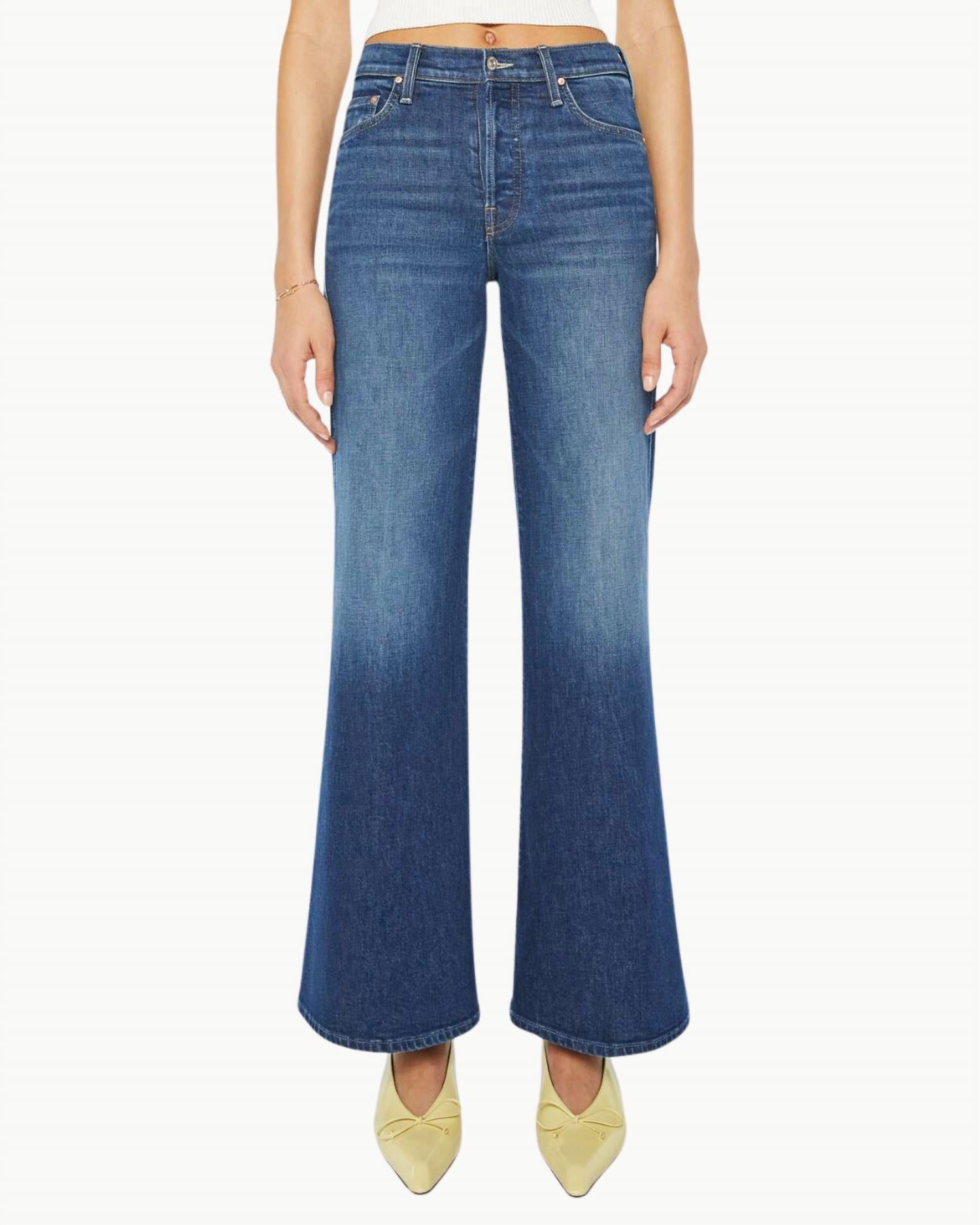 Pair these wide leg jeans with mules, slides or your favorite strappy sandals. Discover the Tomcat Roller Skimp Jeans by Mother in the PERFECTLY IMPERFECT color. These high-rise jeans, crafted from a cotton blend, feature a wide-leg silhouette and a button fly closure. Made from 98% cotton and 2% elastane, they boast whiskering, artful fading, and a clean hem to deliver a broken-in feel. Care for them by machine washing and laying flat to dry. Model is 5'11" and wears a size S.