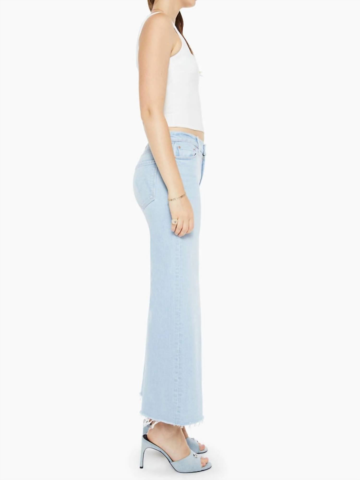 Fit to perfection, we love these high-waist jeans and you will too. Introducing the Twister Ankle Fray High-rise Jeans by Mother, perfect for elevating your spring streetwear wardrobe. Crafted from 99% Cotton/1% Elastane, these jeans in the Cowabunga color feature a slim fit with wide legs and a high-rise waist, offering both comfort and style. Closure: Button closure. Care: Machine wash and tumble dry for easy maintenance. Ideal for vacation wear with its light wash and solid pattern.