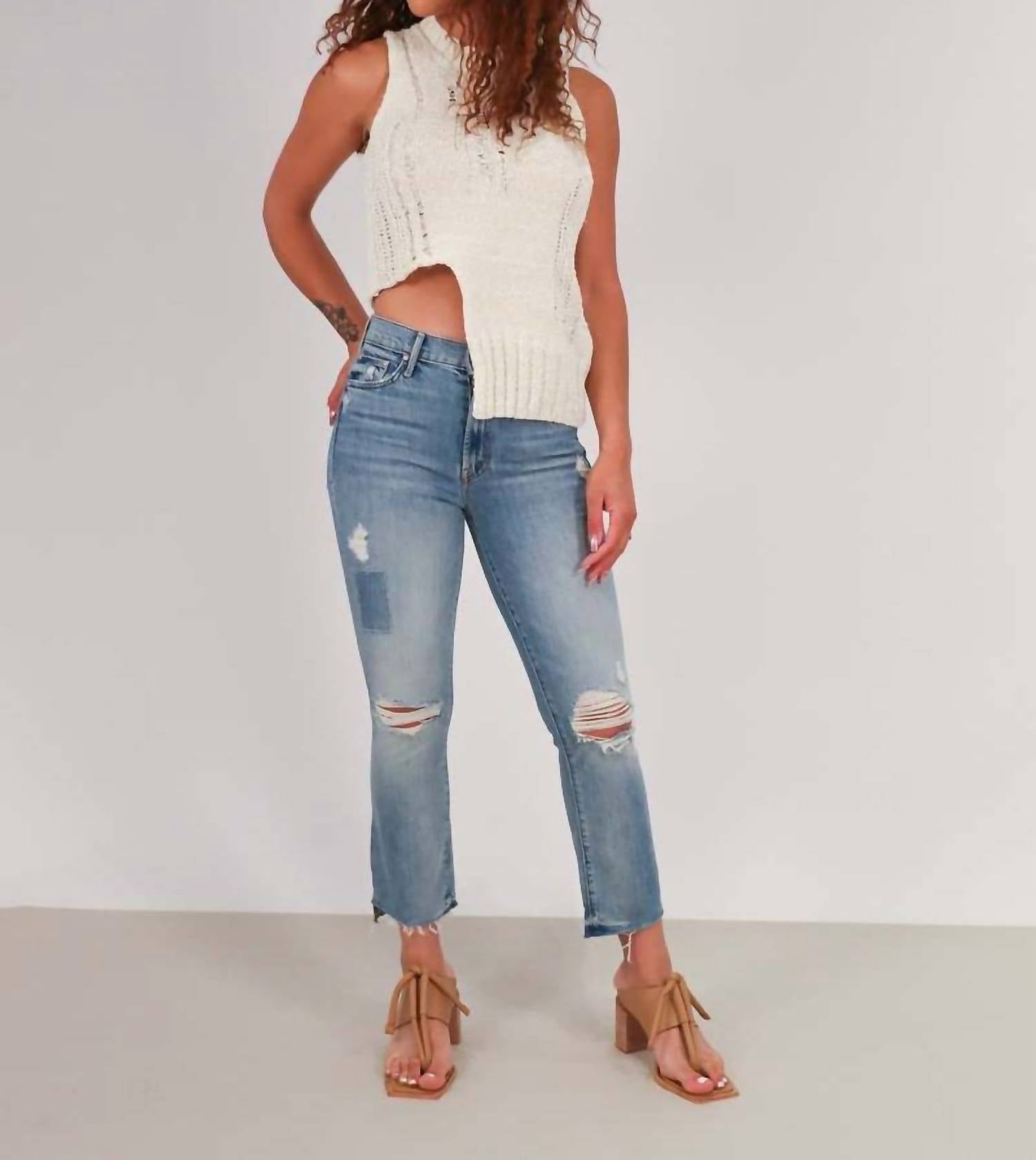 The perfect cropped jean for those transitional seasons. Epitome of iconic denim style in their light blue wash "We Are Castaways" design. Crafted from cotton. Feature a flattering mid-rise with a 10-inch waist rise, a 28-inch garment length, and a slim fit that grazes the low calf. Button closure and functional pockets enhance the practical appeal for any travel occasion. For longevity, machine wash inside out with The Laundress Denim Wash, hang to dry if possible, or opt for a low tumble dry when damp.