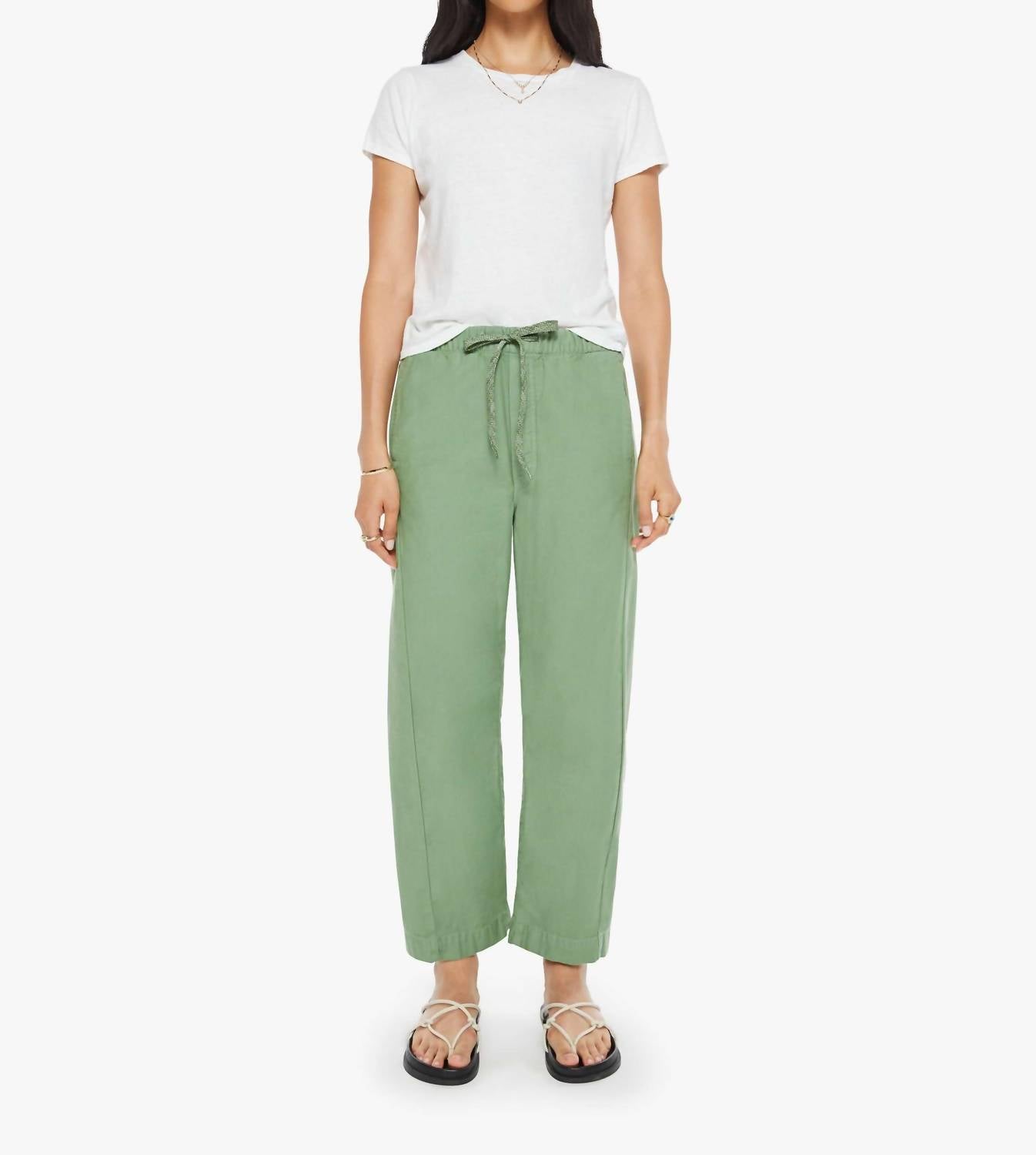 We especially love this cropped jean with a cute pair of slides or sandals. Introducing the Mother Denim Drawn Half Pipe Ankle Jeans in the chic "Sir Yes Sir" color, combining fashion-forward style with comfort. These women's high-rise, relaxed fit jeans with solid pattern and a barrel shape feature practical pockets and a drawstring waist for ease and adaptability. Made from 100% cotton, they are an ideal choice for summer vacations, embracing the monochrome trend. For simple upkeep, machine wash and tumble dry as needed.