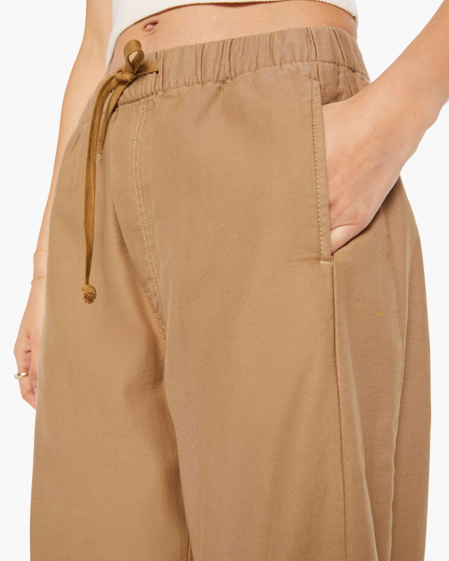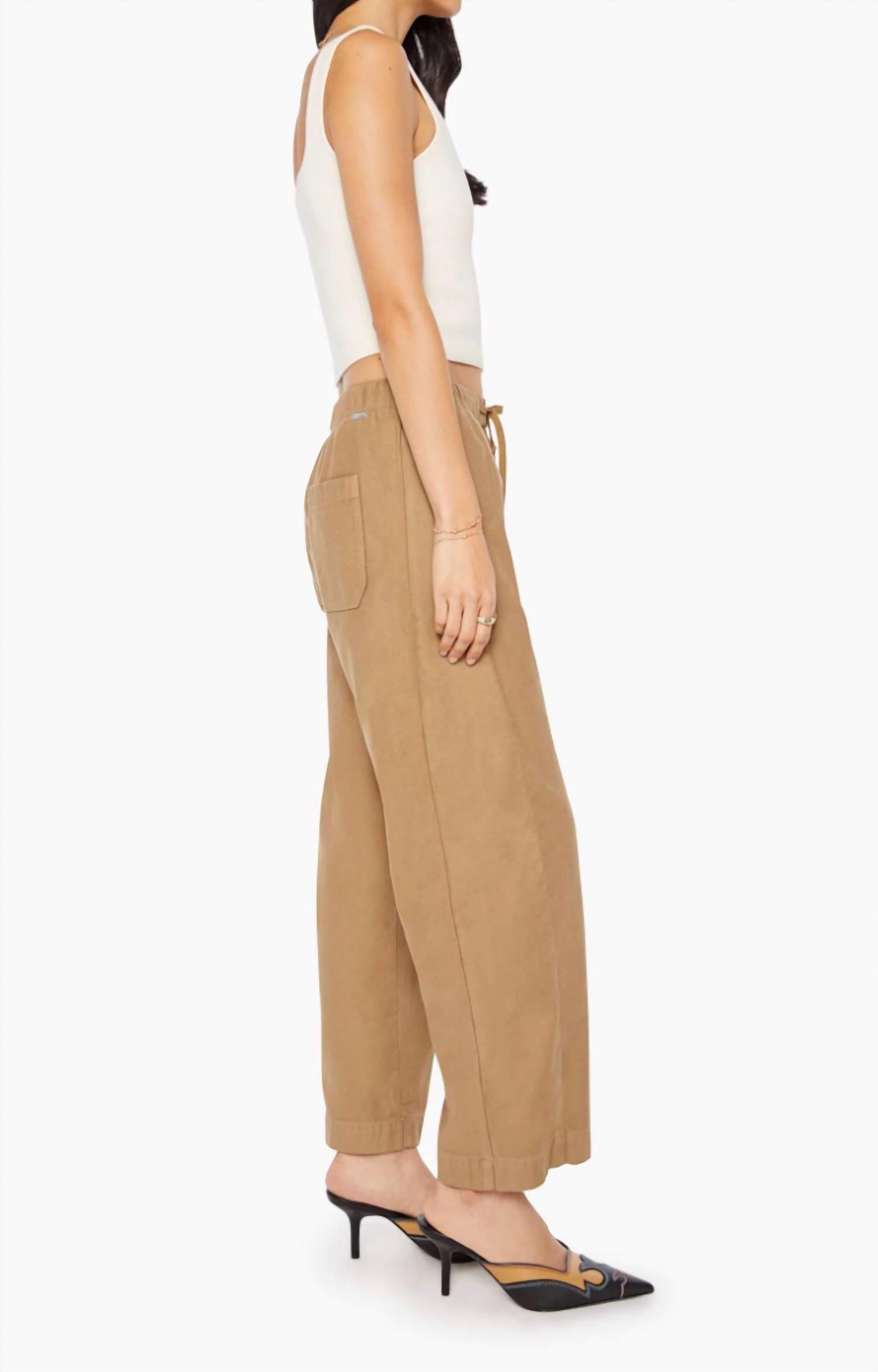 Introducing the Drawn Half-pipe Ankle Pants by Mother, designed for the fashion-forward individual. These high-rise trousers offer a classic fit with a wide, curved leg and an ankle-length inseam, perfect for any dinner party or spring event. Crafted from 100% cotton, they feature a solid khaki hue called Sir Yes Sir Chipmunk and a convenient pull-on drawstring waistband. Care for them with a machine wash and lay flat to dry for best results.