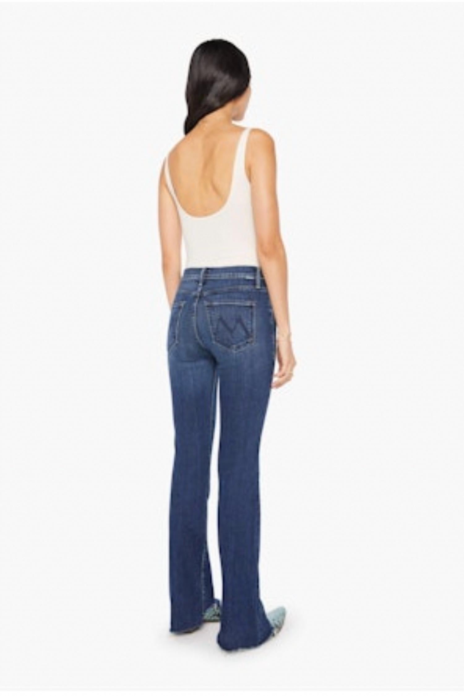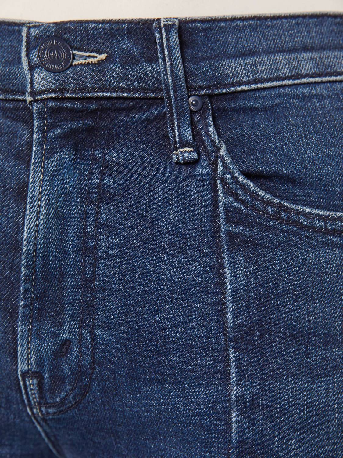 Tuck your favorite tee into these high-waist jeans for a more casual-cool feel. Introducing the Insider Skimp Pointy Fray Jeans by Mother, a standout piece in the bold "You're A Riot" shade designed for streetwear-savvy women. These high-rise, slim-fit jeans feature a flared leg and seamed details that add a touch of sophistication. Crafted in Los Angeles, the jeans are made from a premium cotton blend (78% Cotton, 16% Modal, 4% Polyester, 2% Elastane) ensuring comfort and style. Featuring a button closure and practical pockets, these dark wash jeans have a 10" rise and a 31" inseam, perfect for any holiday party or summer occasion.