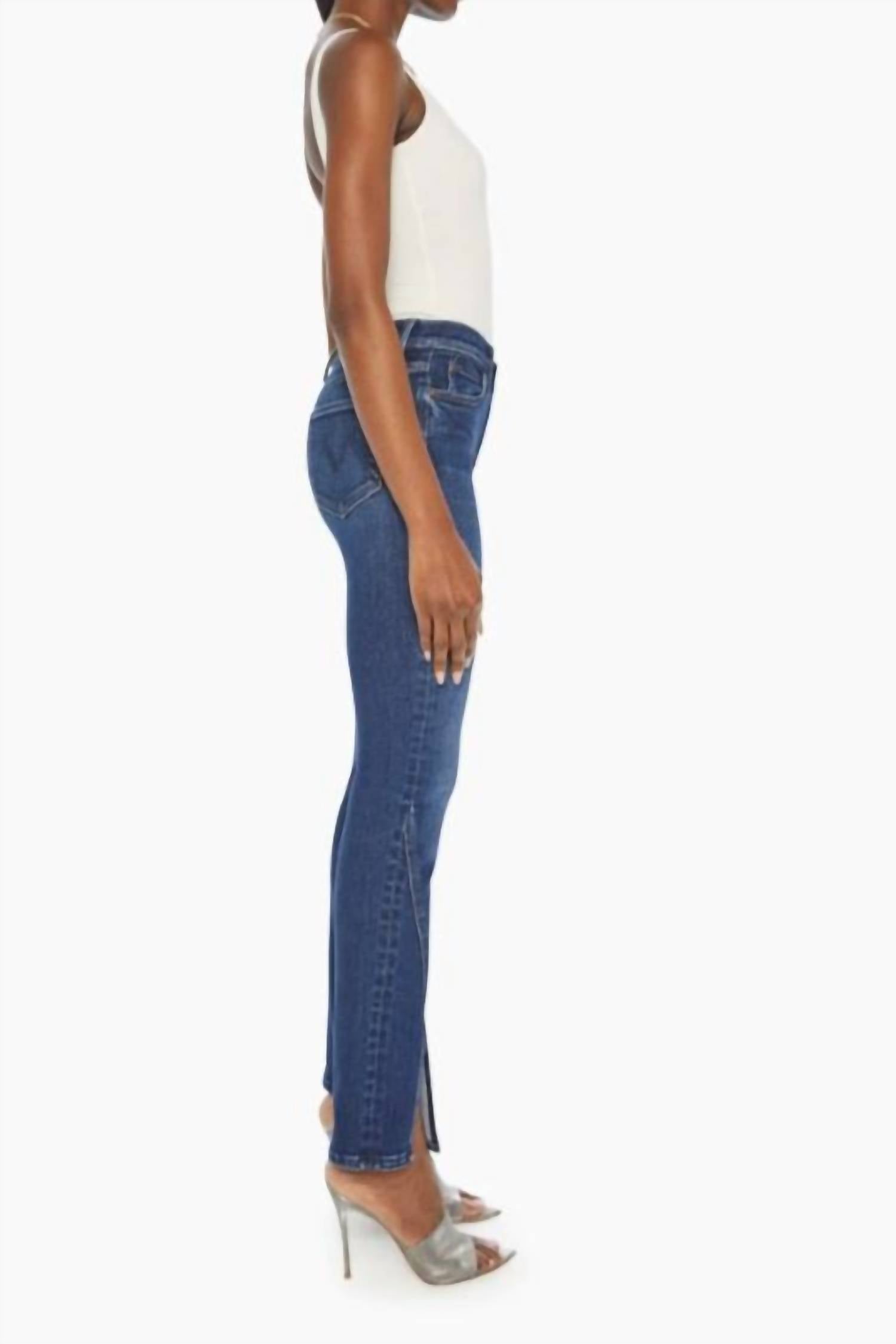 Everyone needs a good pair of skinny jeans and this is a style you'll keep reaching for no matter the season. Discover the Women's The Rascal Sliced Up Sneak Jeans by Mother, a stylish streetwear essential in a solid Mind Games hue. Crafted with a skinny leg and classic fit, these jeans are designed for a flattering silhouette, perfect for vacation season. This medium wash denim provides a versatile addition to your spring wardrobe with functional pockets for added convenience. Closure is secure with a zip closure, ensuring a sleek finish to your look.