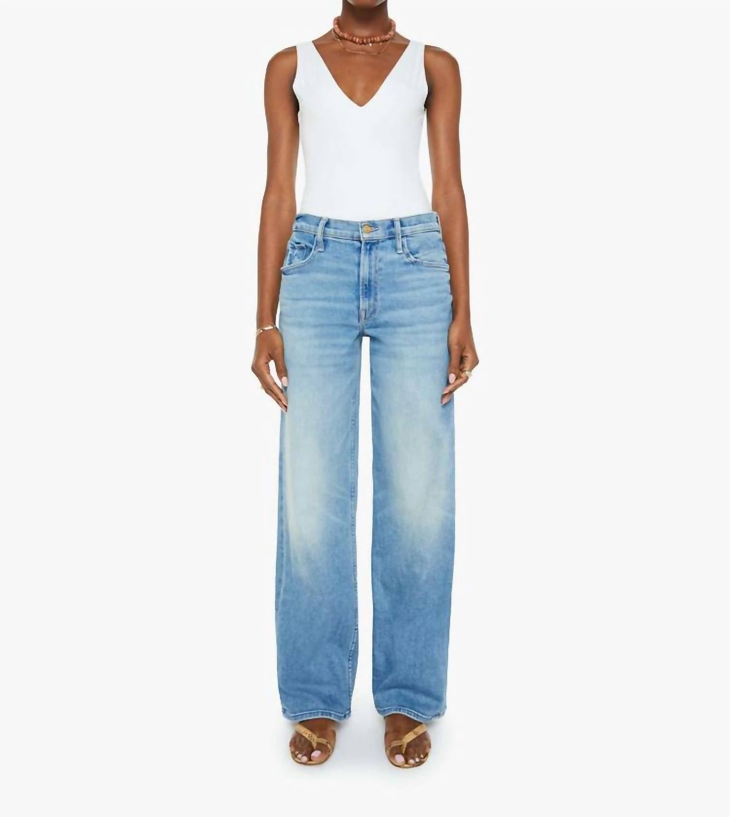 Pair these wide leg jeans with mules, slides or your favorite strappy sandals. Elevate your vacation wardrobe with the Women's The Spinner Zip Sneak Jeans by Mother, designed in a textured Glow Up hue. These streetwear-inspired jeans feature a classic fit and wide leg style, complemented by a convenient zip closure. Crafted in a light wash denim, they effortlessly blend comfort and style, making them perfect for springtime outings. Pockets enhance functionality while you enjoy a relaxed and chic look.