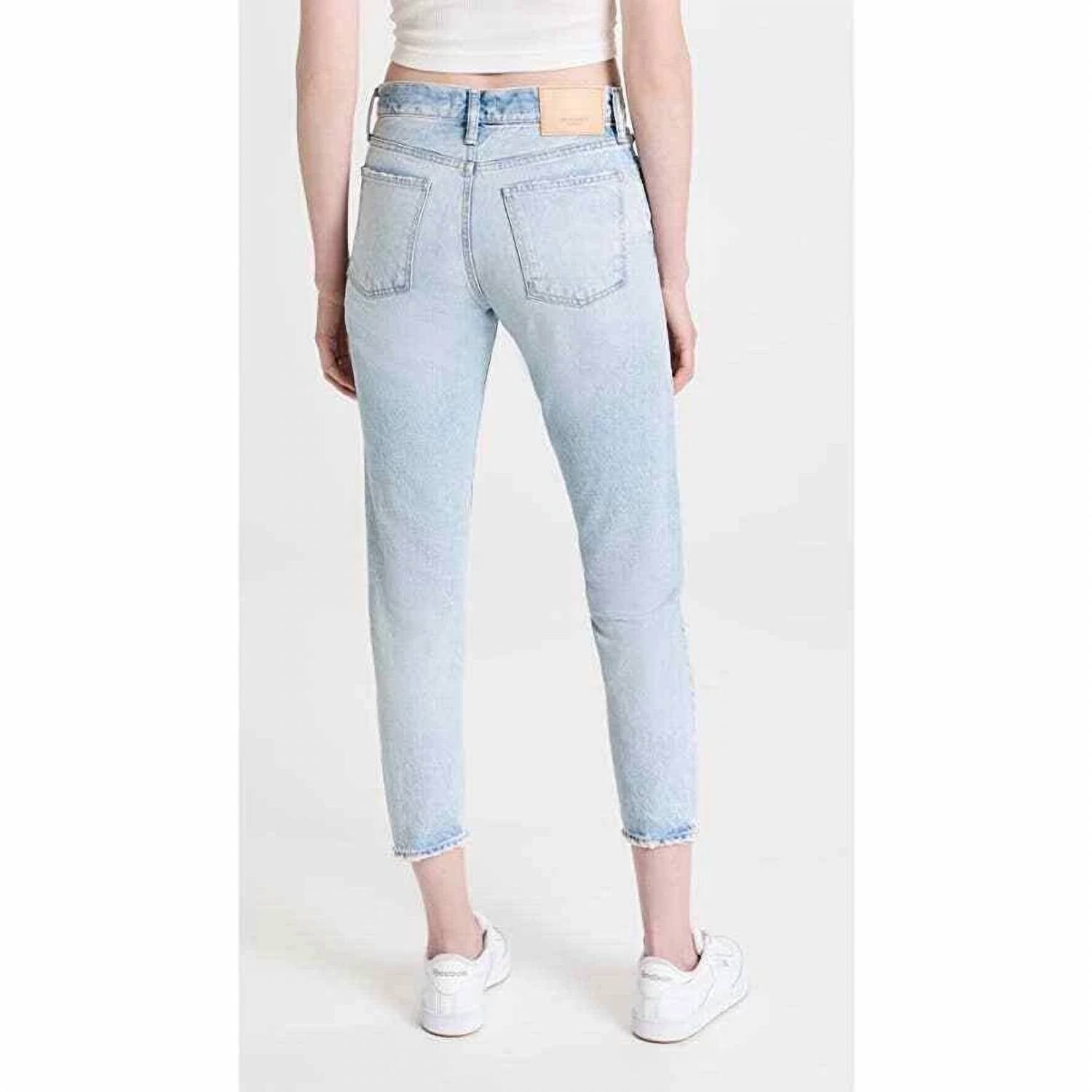 Comfortable and stylish, we love this cropped jean for all of the obvious reasons. Discover the Moussy Naval Tapered Mid Rise Jeans, a stylish choice in solid light blue, tailored for women who appreciate quality craftsmanship. These ankle and cropped length jeans feature a regular fit with straight legs, providing a chic yet comfortable silhouette. Crafted from 100% non-stretch cotton with a button fly closure, these jeans are proudly made in Japan. Care is simple—machine wash on a cold delicate cycle and avoid tumble drying.